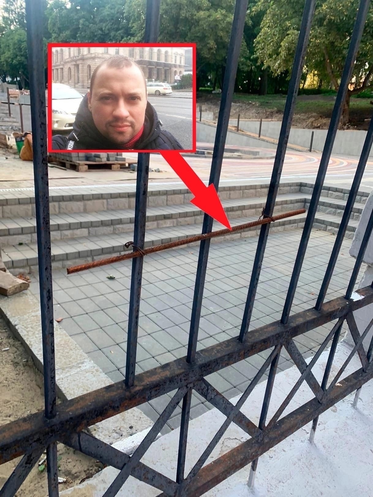 В ходе работ на заборе был обнаружен пруток арматуры, неизвестного назначения: