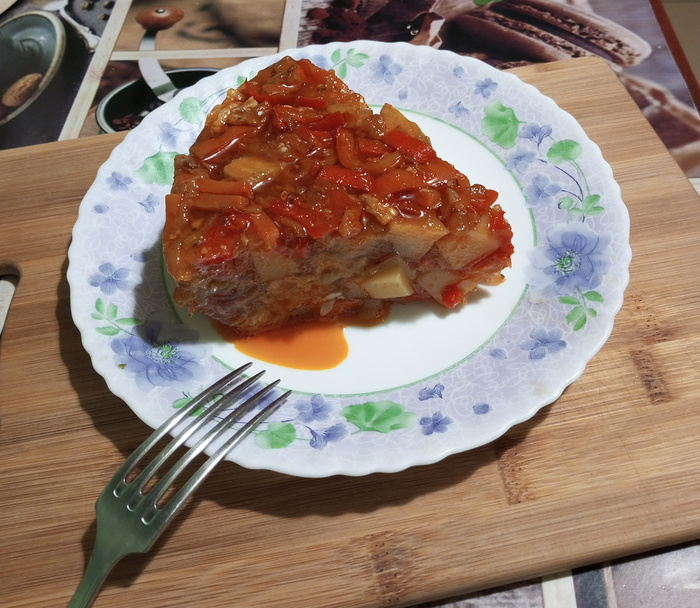 Если сразу не съели, остаток можно убрать в холодильник и на следующий день побаловать себя куском «овощного пирога». Разумеется, предварительно разогрев.