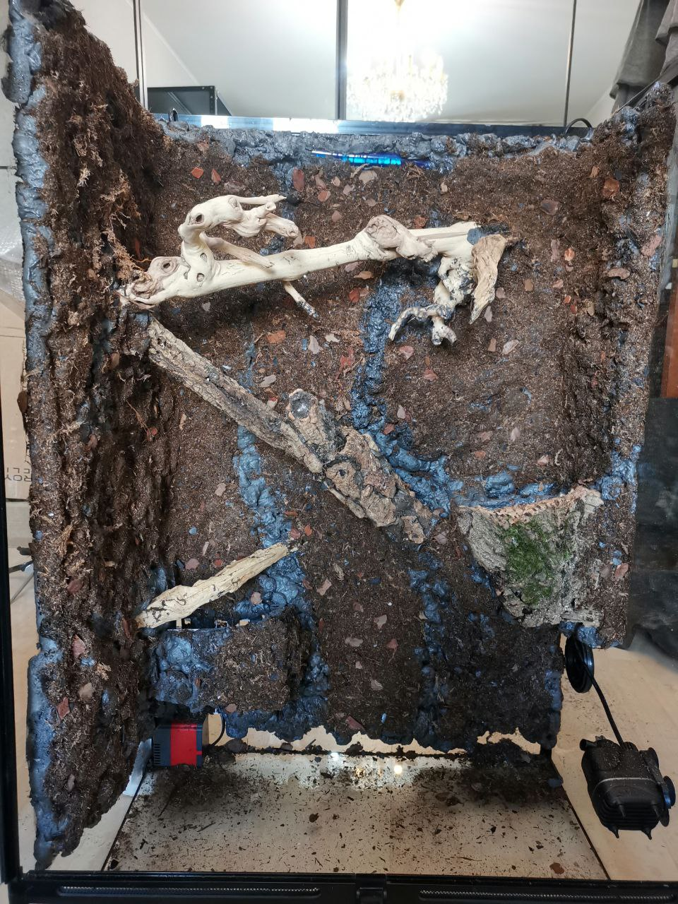 Далее я запенил основу под субстрат, прилепив кусок коры.