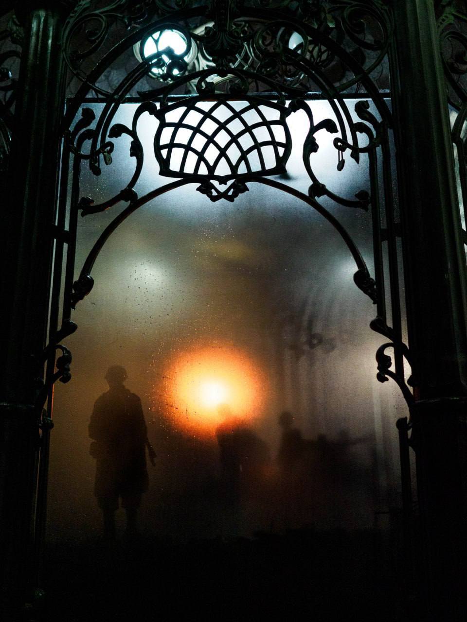 Возле «Свечи памяти» уже собирается много неравнодушных. По периметру ротонды установлены полупрозрачные щиты, на которых запечатлены тени людей — силуэты прошлого. Эти «тени» — образ тех, кого мы потеряли, кого помним, и кто навсегда остался с нами через историю.