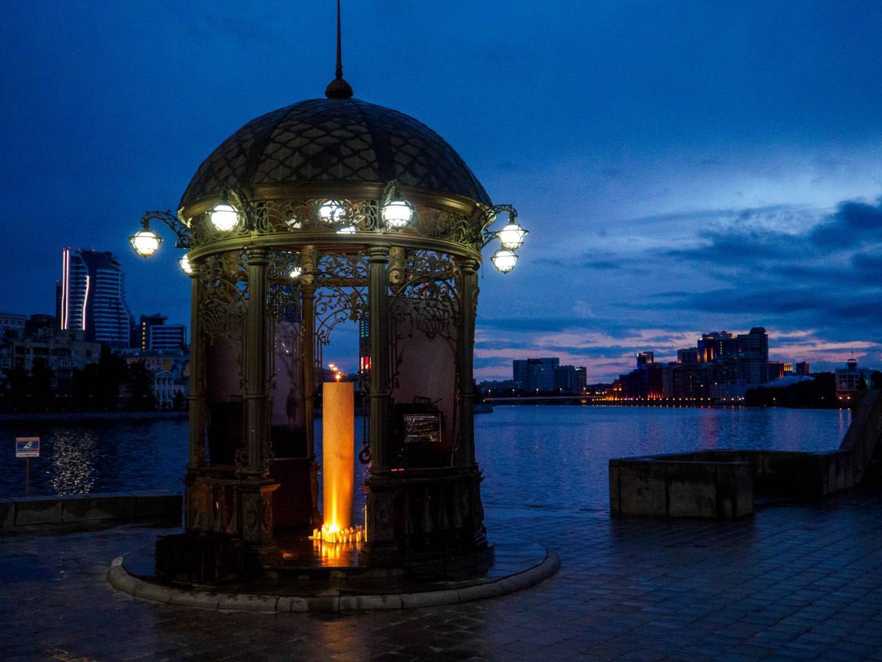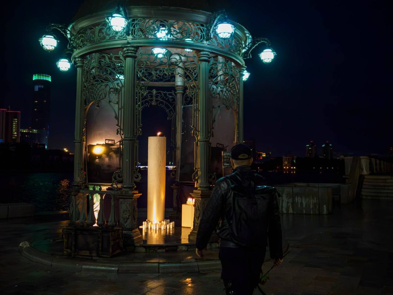 Сегодня ночью на набережной Екатеринбурга была установлена очень значимая инсталляция, символизирующая общую скорбь и память нашего народа — «Свеча памяти».