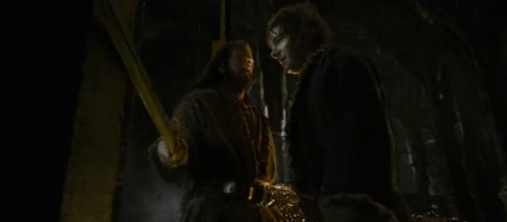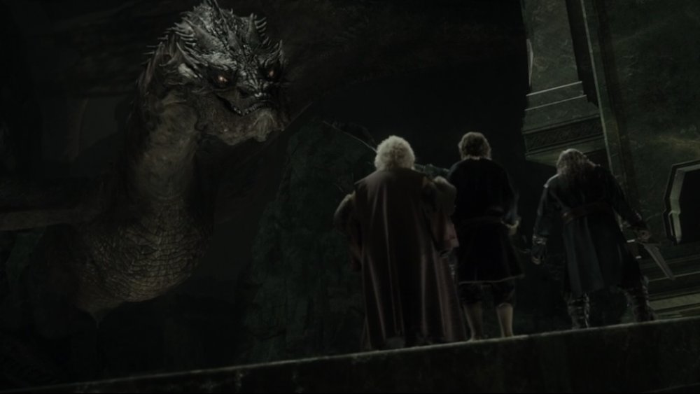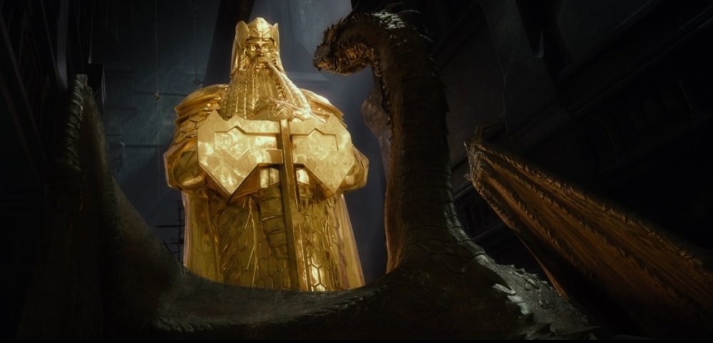 О они тебе по душе не так ли? Это хорошо Посмотри как они умирают!Ты! Ты ничего не заберешь у меня гном! Это я пожрал всех ваших прославленных воинов, я вселил ужас в сердца людей Я теперь Король Под Горой!Мести? Мести! Я покажу вам, что такое местьЯ это Пламя!Я это СМЕРТЬ!
