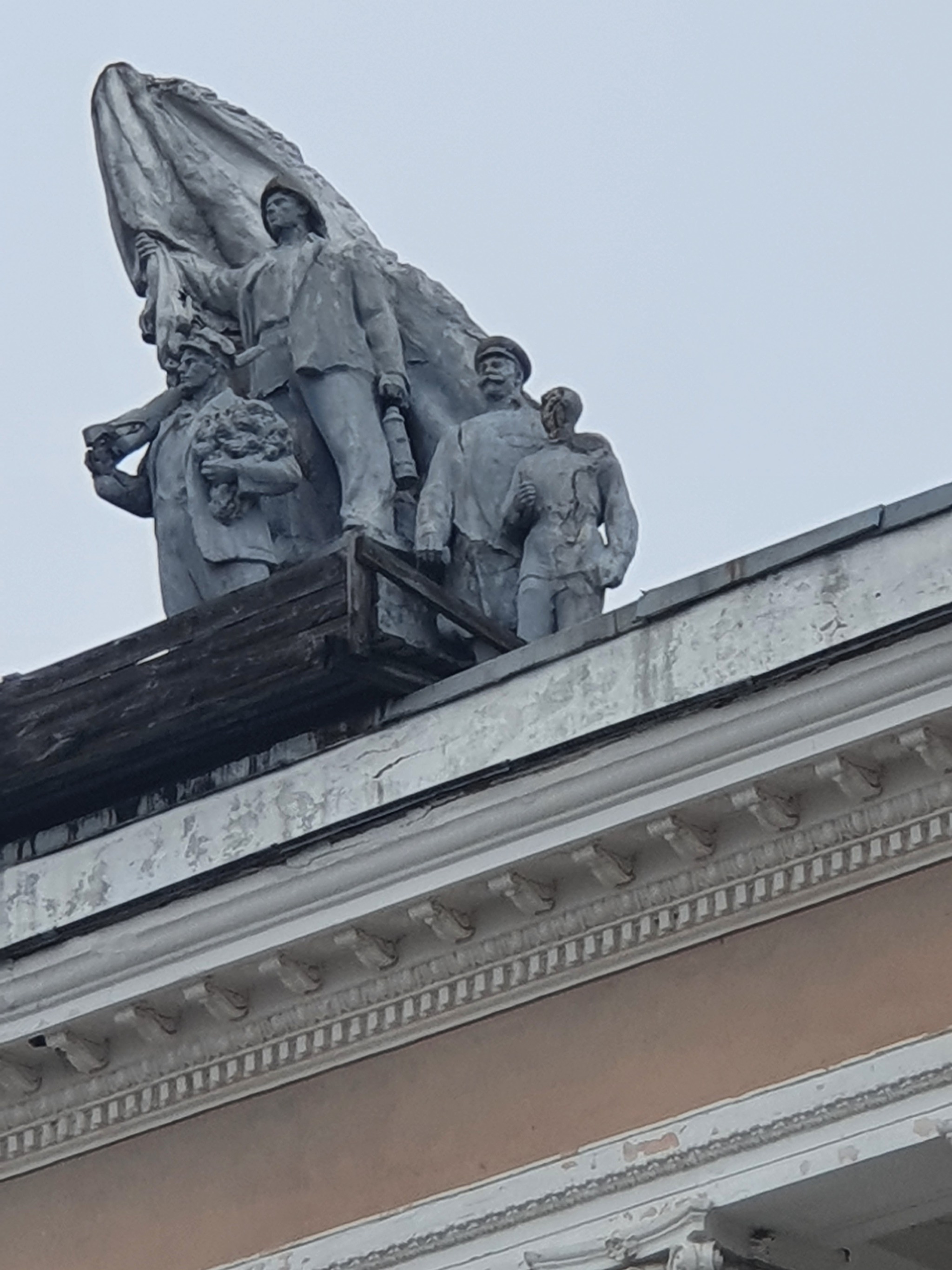 Скульптурная композиция (точнее то что от неё ещё осталось) "Сталин обнимает пионера рядом с двумя горняками"