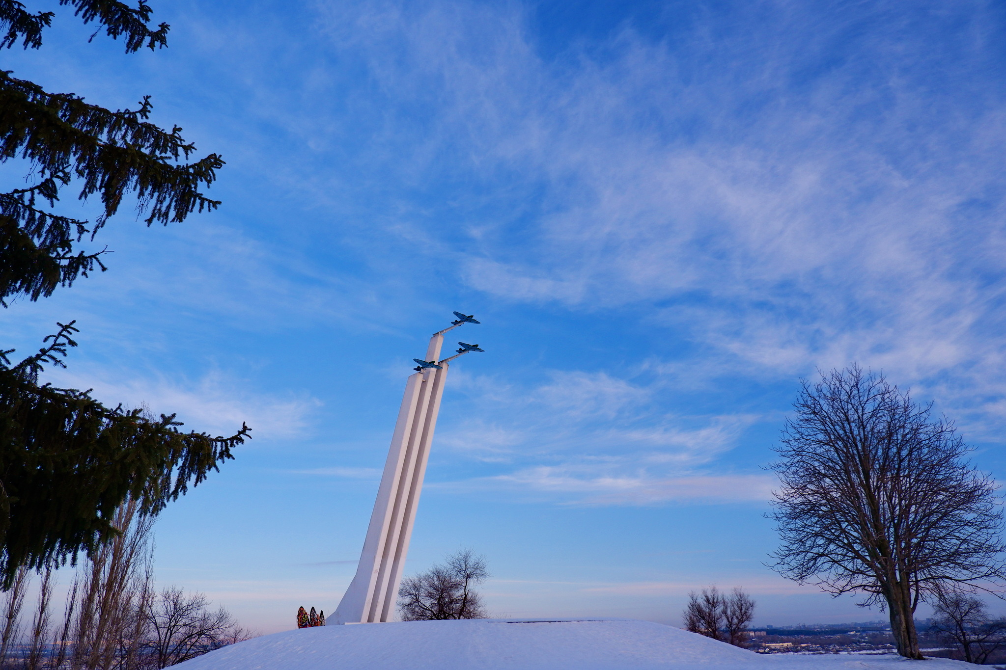 Пока архитекторы и инженеры работали над проектом, Гагарин полетел в космос, поэтому было решено изменить посвящение монумента. Памятник получил название «Покорителям космоса». 250-тонная стальная решетчатая конструкция, облицованная титановыми пластинами, была собрана вручную на земле и поднята при помощи специальных кранов.