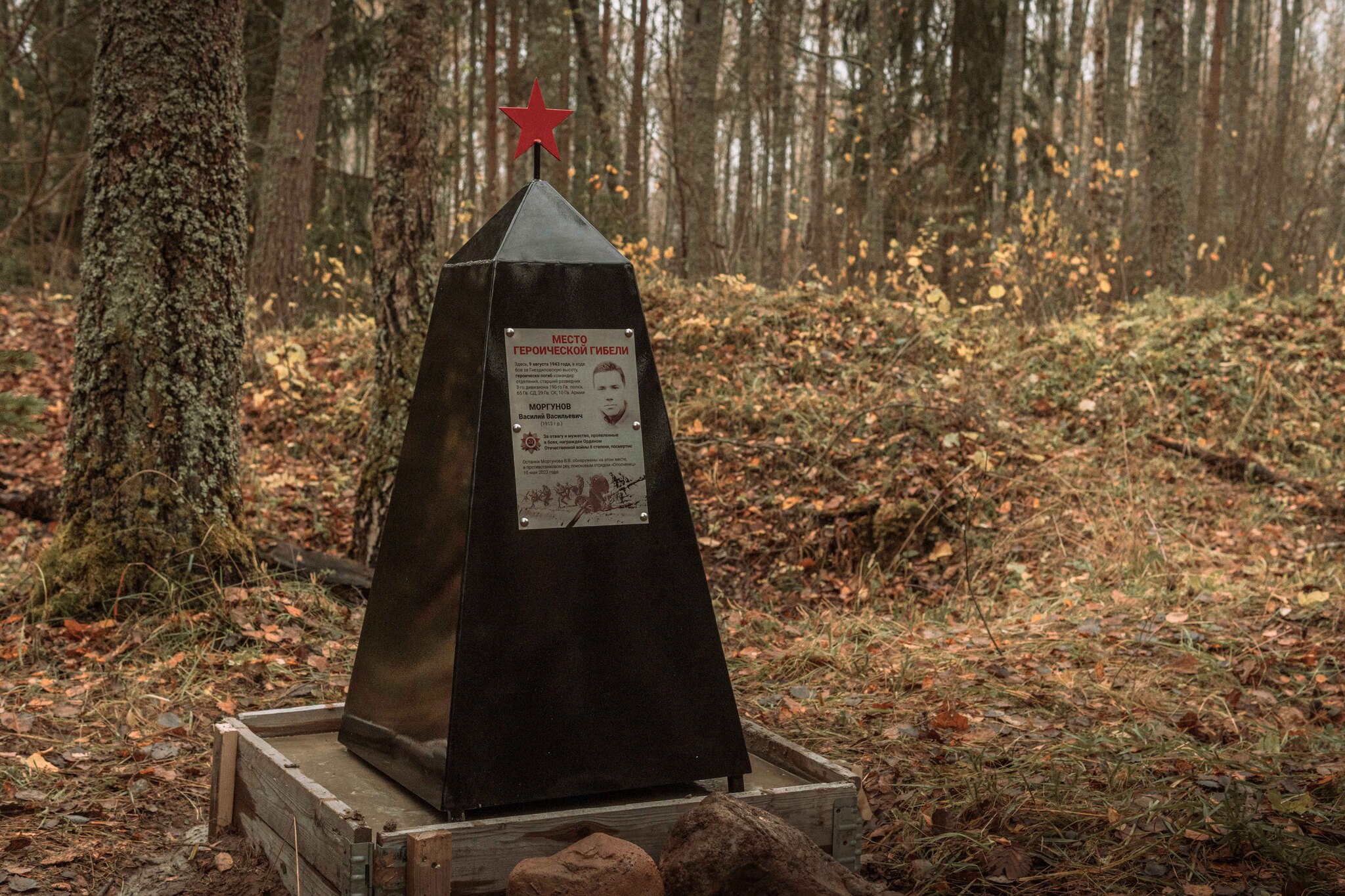 10 мая 2022 года в этом месте нами были обнаружены останки Моргунова Василия Васильевича.