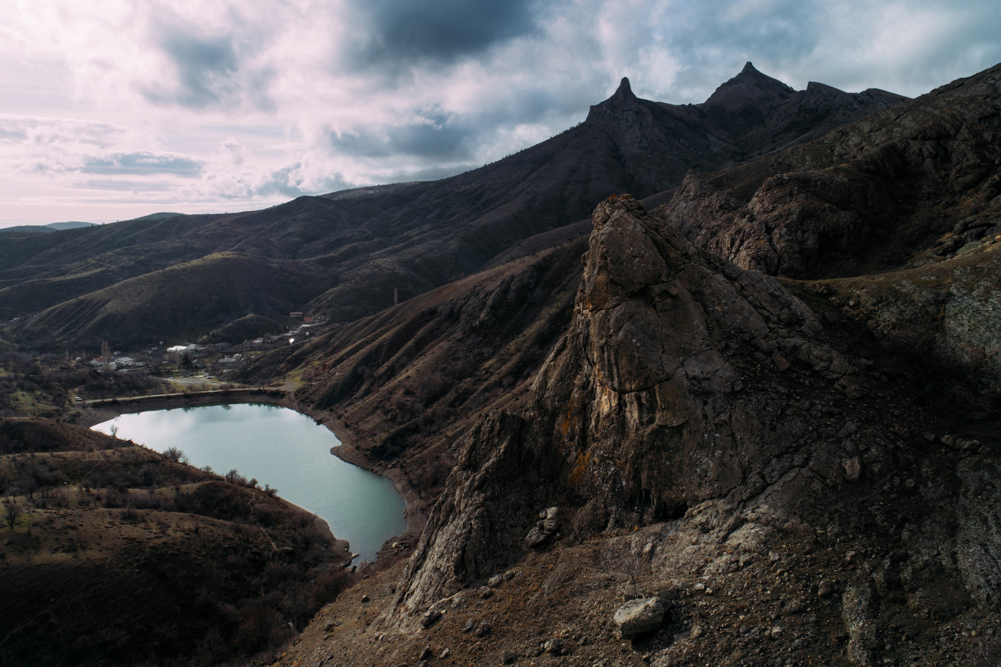 Зимний вид на озеро Панагия в Зеленогорье. Крым.