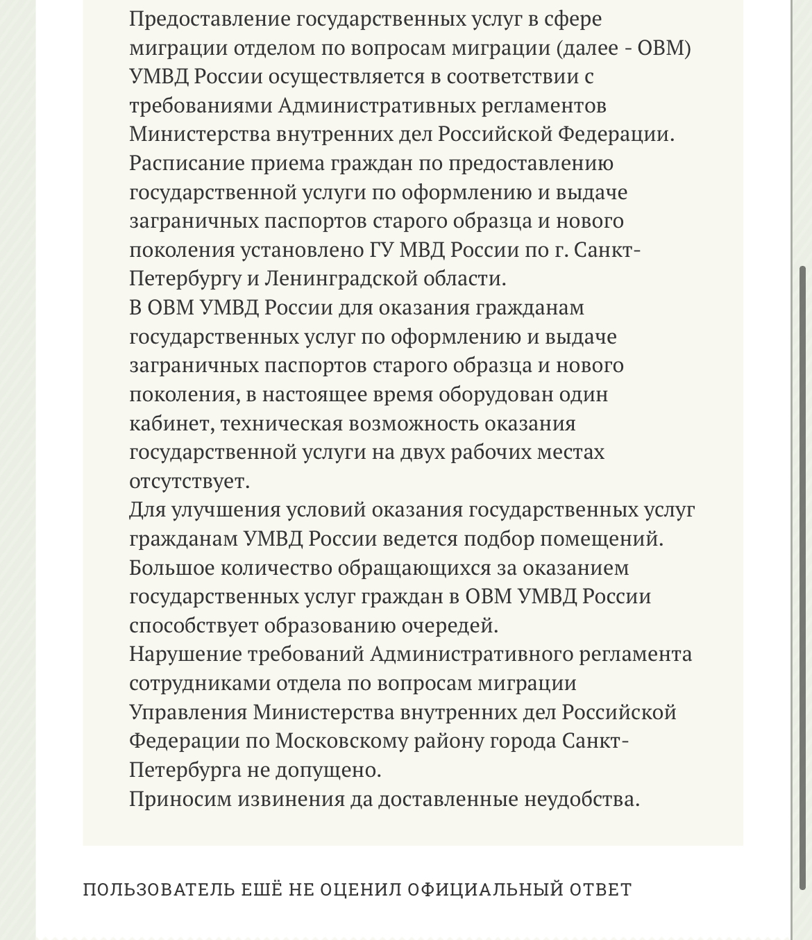 Это фото очереди на выдачу загранпаспортов, когда я пришел, через 10 минут после начала приема, я был 93м и пусть там не все, кто то вышел на улицу, но по факту человек 50 точно находилось в помещении, с левой стороны ещё столько же если не больше иммигрантов из соседних республик. Вот такие пирожки, при этом у них есть все возможности организовать выдачу по времени, так как на подачу документов и фотографирование, тебя приглашают к определенному времени и вся процедура занимает 5 минут.