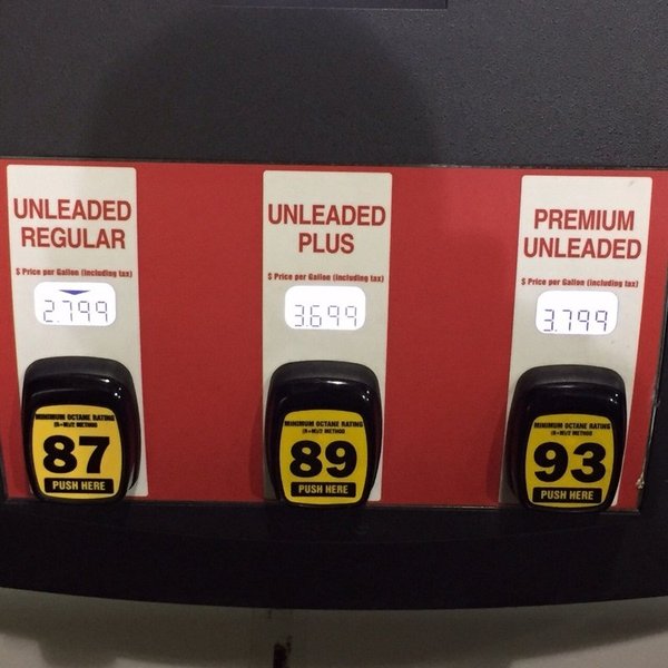 Вообще октановое число исчисляется в США и Канаде несколько иначе чем в России здесь пишут 87 но при этом такой бензин называеться regular то есть подходящий для большинства авто. При этом качество очень высокое и даже при использовании в современных авто имеет хорошие показатели. Эти фото были сделаны после нового года. После этого мои друзья в США говорили что была цена около 1,9$ за галлон. То есть около 50 центов. Цена постоянно меняеться в зависимости от цены нефти. Также от штата к штату цена тоже колеблется в зависимости от налогов штата. В Пенсильвании бензин не дешев. Во Флориде например в это же время галлон стоил около 2$