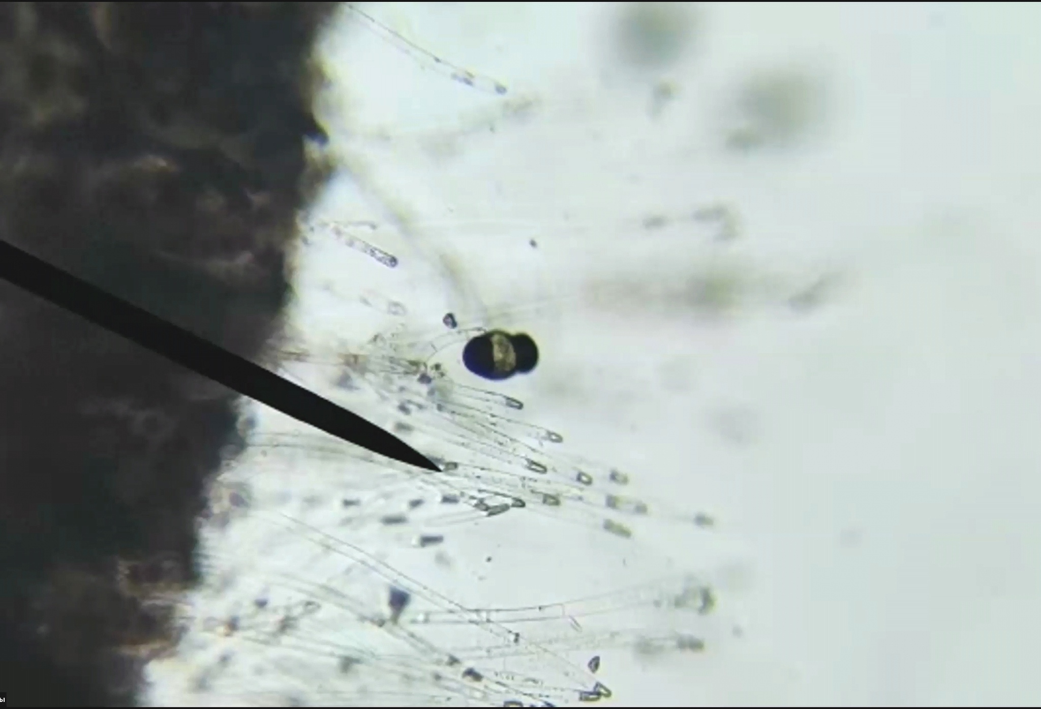 Похожая на голову стрекозы штука) а это пылинка сосны)) тёмное - два воздушных мешка, усиливающих летучесть. Когда сосна пылит - края луж желтеют, как и машины. И пролетает эта пыльца во все баночки, во все пробы)