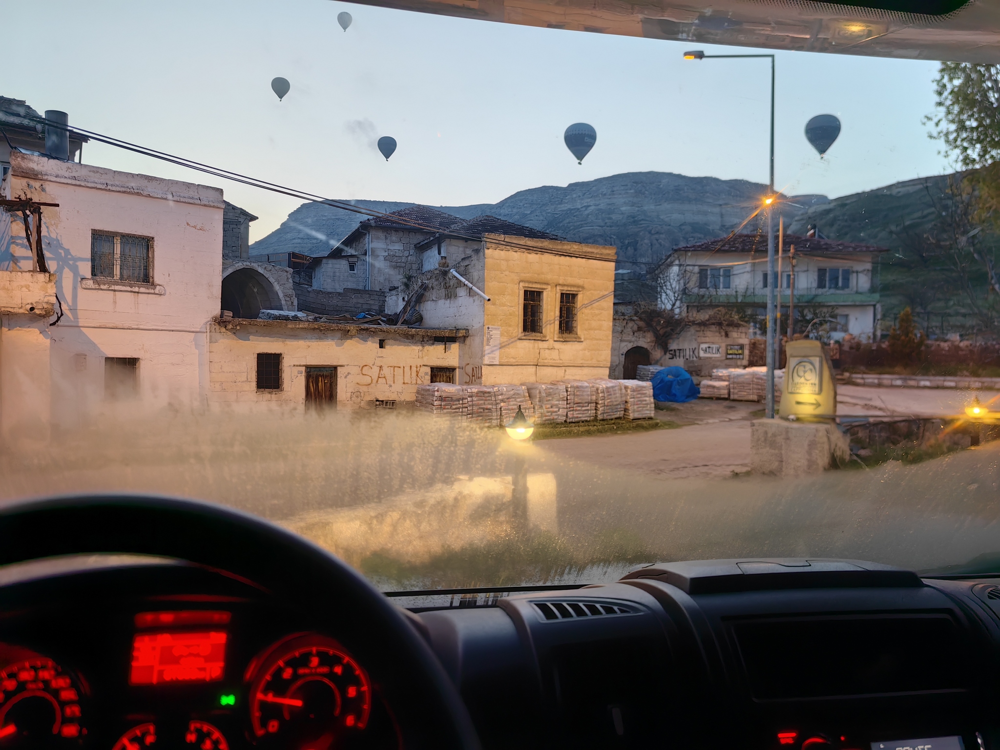 Собирались рано утром уезжать в Каппадокии - место для завтрака искать - опа, начали из-за хребта вылетать шары)