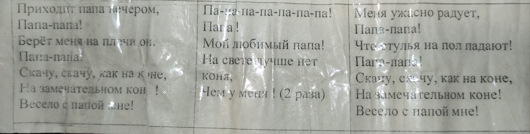 1 user4769769 Папа-конь 2 года назад Вот такой песней, ребёнок будет поздравлять папу на 23 февраля... На 8 марта думаю будет песенка Мама-лошадь. [моё] Поздравление Детский сад Песня Дети Ещё 0