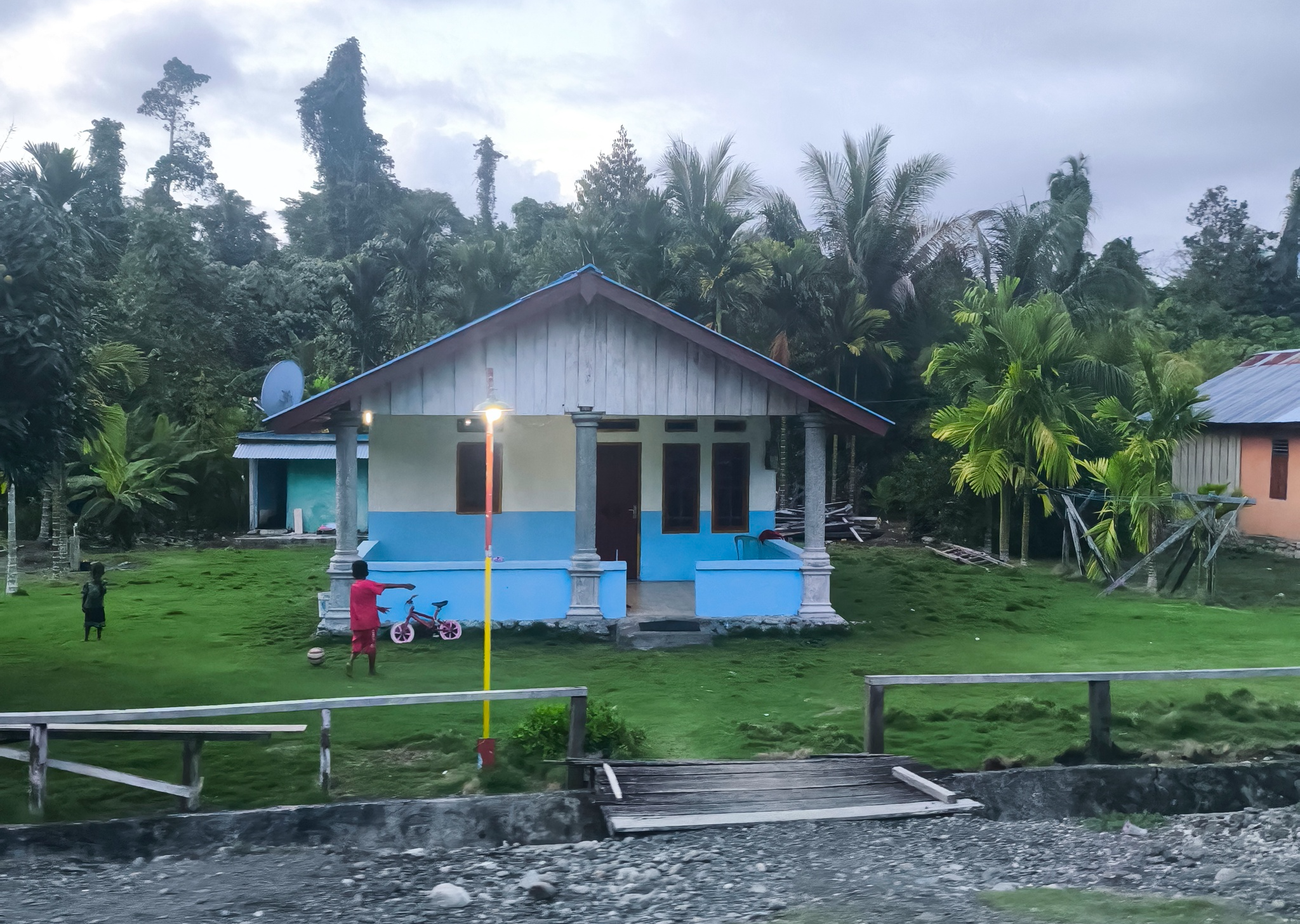 Порой я слышу недовольство папуасов по поводу того, что индонезийское правительство бессовестно выкачивает ресурсы из Папуа, ничего не давая взамен (особенно в случае с золотыми рудниками Freeport), но пока оценить ситуацию мне сложно. Еще и на глаза то и дело попадаются "свежие" деревни, явно построенные или большой корпорацией, или государством - однотипные проекты, выбивающиеся из общего архитектурного стиля.