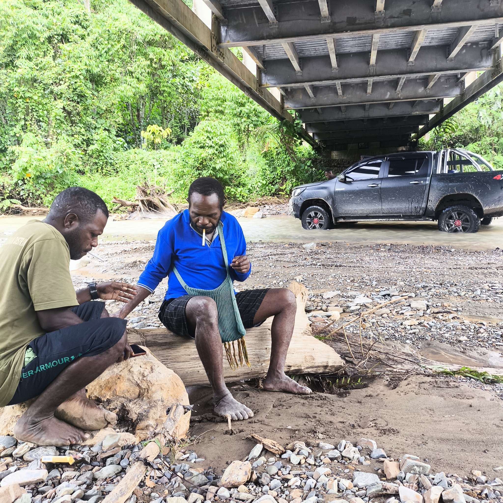 Заправившись, мы покинули поселение и вдруг свернули под мост. А, мойка! Фух. Оказалось, что мы почти приехали, и Умаи решил помыть машину. От моей помощи он отказался.