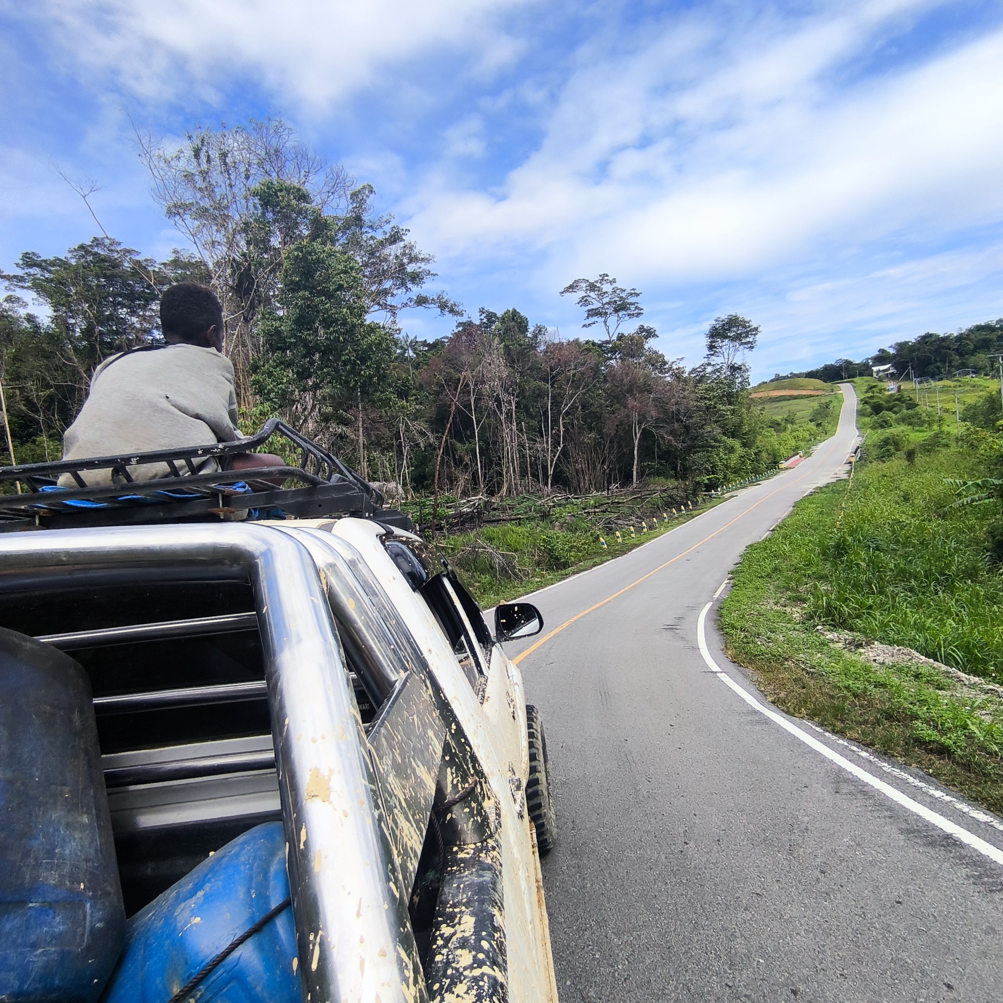 Я наконец-то дождался "свой" пикап! Познакомился с Петрусом, Анари и водителем Умаи. Они едут около 80 километров до Кебара. Умаи родом из Вамены, горной части Папуа, про те края мне много чего нарассказывали - там тебе и "примитивы", и "каннибалы", и, вероятно, сильные преувеличения от тех, кто там никогда не бывал.