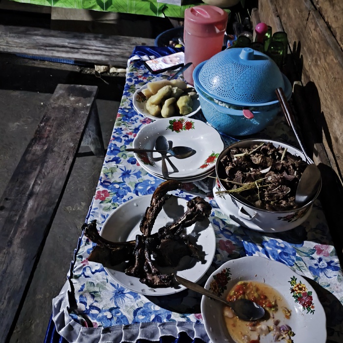 Закончили ужинать и меня отпустили спать. Дом изобилует щелями, поэтому лежак укрыт москитной сеткой. На улице гремит гром, ливень тарабанит по крыше, а я в доме. Еще один волшебный день в копилку этого путешествия. Люди удивительны.