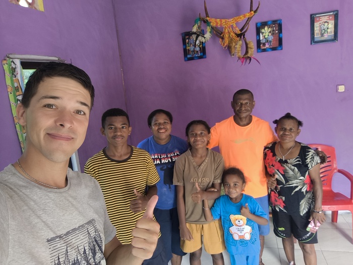 Когда меня уже почти отпустили, появился еще один мужичок, но уже на мопеде. Его звали Яфлис, и своим светлым цветом кожи он явно выделялся среди папуасов (особенно в сумерках). Удивительнее всего стало то, с какой уверенностью он обратился ко мне пусть на ломаном, но английском, и сказал что-то вроде: "Я говорю по-английски. Я помогу тебе.". На мои отговорки он не обратил никакого внимания — искренне верил, что я нуждаюсь в помощи и нахожусь в беде. Не стал отказываться — домой так домой!