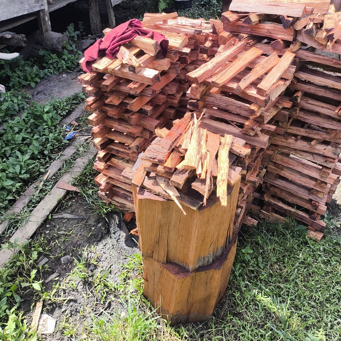 Здесь же повсюду заготовлены дрова из красноватого дерева.