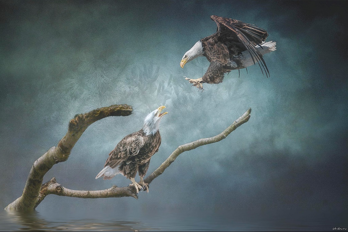 afront Пара белоголовых орланов на берегу туманной реки 10 лет назад Автор Brian Tarr Белоголовый Орлан