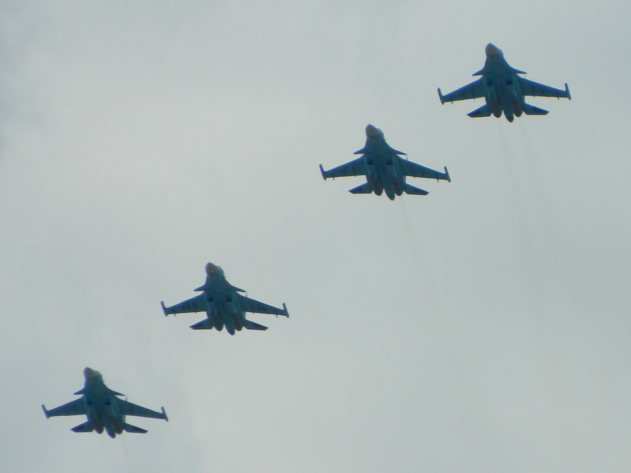 Т.к. эти бомбардировщики, в отличие от старых Су-24, имеют весьма тихие двигатели, то проход на 300м идёт без срабатывания сигнализации у припаркованных автомобилей возле дома. А вот раньше Су-24 грохотали так, что местные жители неоднократно жаловались в МО на эти безобразия. А сейчас вот такая кр-р-расота: