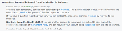 Можно подробнее? Просто бан за два комикса подряд? Или временной промежуток важен? Очень как-то странно звучит