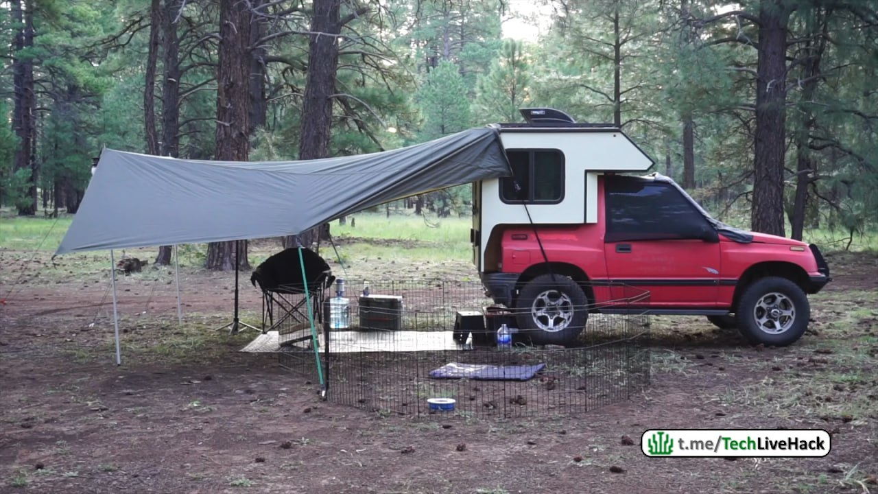 Жилой модуль собрал с нуля: внутри спальное место, занявшее пассажирское кресло, мини-кухня, походный холодильник и генератор.