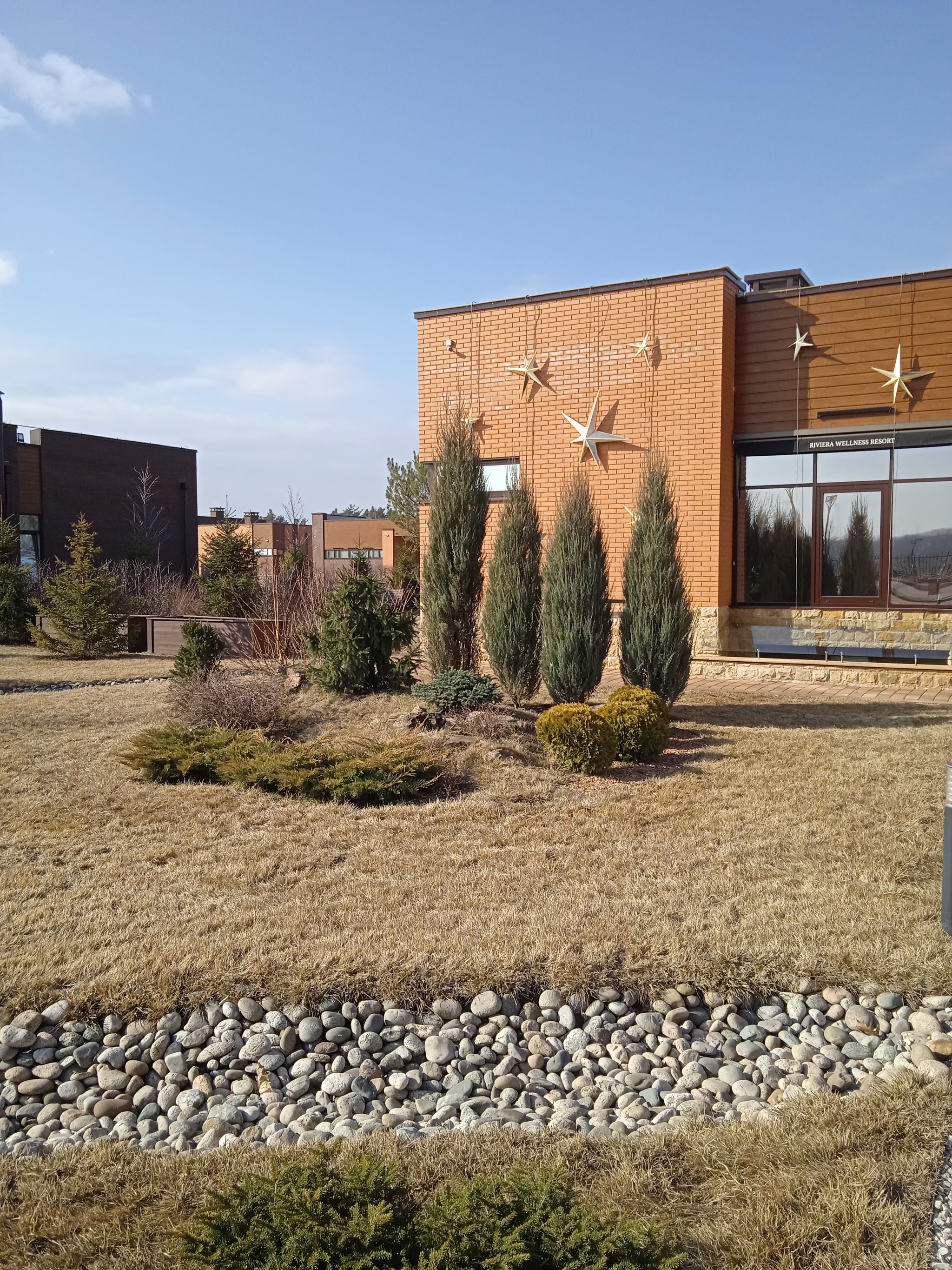 Период для стрижки всегда выбираю весну. Заказчик не любит формованные растения, поэтому непосредственно перед периодом активного роста. Стригу вручную, садовые ножницы "Raco", им уже 10 лет. Перед переходом на следующий можжевельник протираю лезвия спиртом.