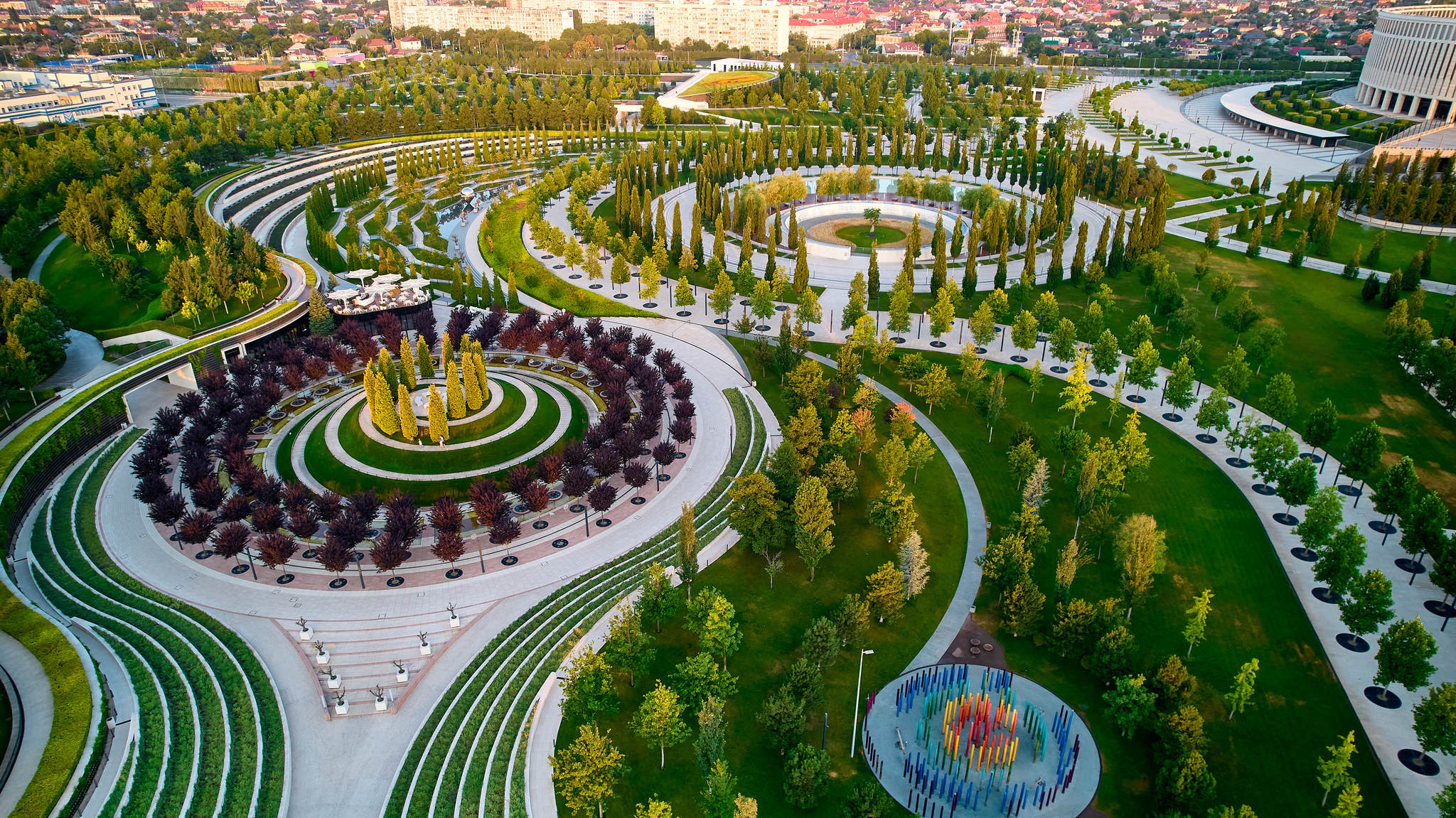 Думаю это лучший парк в России, из тех в которых я был. Потрясающая архитекта с множеством прогулочных дорожек, водоемами, зонами для активного досуга и другими интересными участками. И все это построено на частные средства бывшего владельца и основателя сети Магнит Сергея Галицкого.