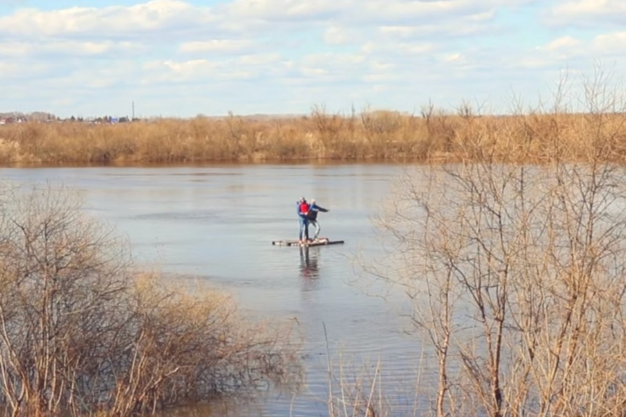 Действительно, самодельным плотом управляли взрослые ребята. Такая идея, как один из них признался, пришла от нечего делать. В итоге за день собрали себе плавательное судно из подручных средств, а потом опустили его на воду и поплыли. Да не просто так, а снимая все на камеру и готовя при этом шашлык.