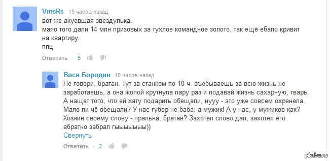 AlphaSomets 11 лет назад Парочка комментов о Юлии Липницкой. На пресс-конференци Липницкая рассказала, что "подаренную" ей квартиру в Москве придётся выкупить. Вот так на это отреагировали два баклана на ютуб [моё] Быдло Мат Комментарии Юлия Липницкая