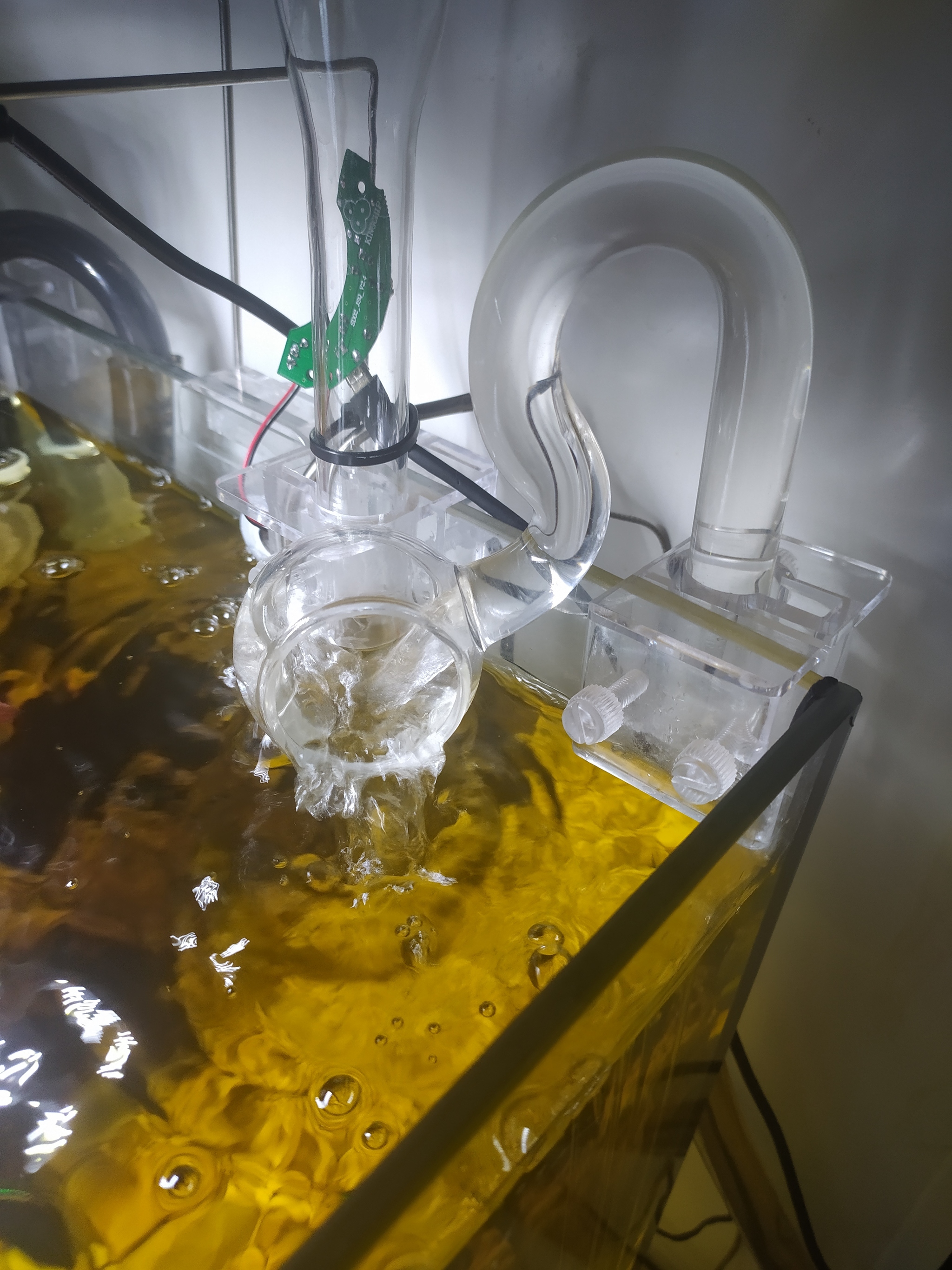 Валялась дома платка usb парогенератора - мелкая такая хреновина. Опустил в аквариум, подключил, появился туман, закрепил магнитиком на стенке: