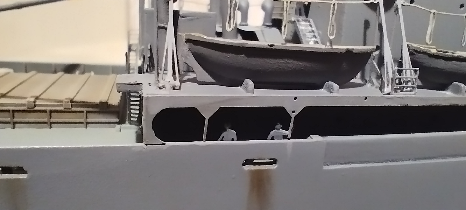 Потом случилась беда. Кошка скинула со стола, собака подняла и оттащила в свою лежанку. Съела дымовую трубу, много слизала, царапины на корпусе, в общем, хотелось бросить к черту. Через пол-года достал, мало-помалу стал лечить. труба из авторучки. Стрелы грузовые сам из литников. На полиспасты забил и уложил стрелы по-походному, на стойки. Отметины зубов замаскировал ржавчиной, поэтому она и к месту, и не к месту. Энтузиазм пропал, сейчас только хочу добить, жаль бросать.