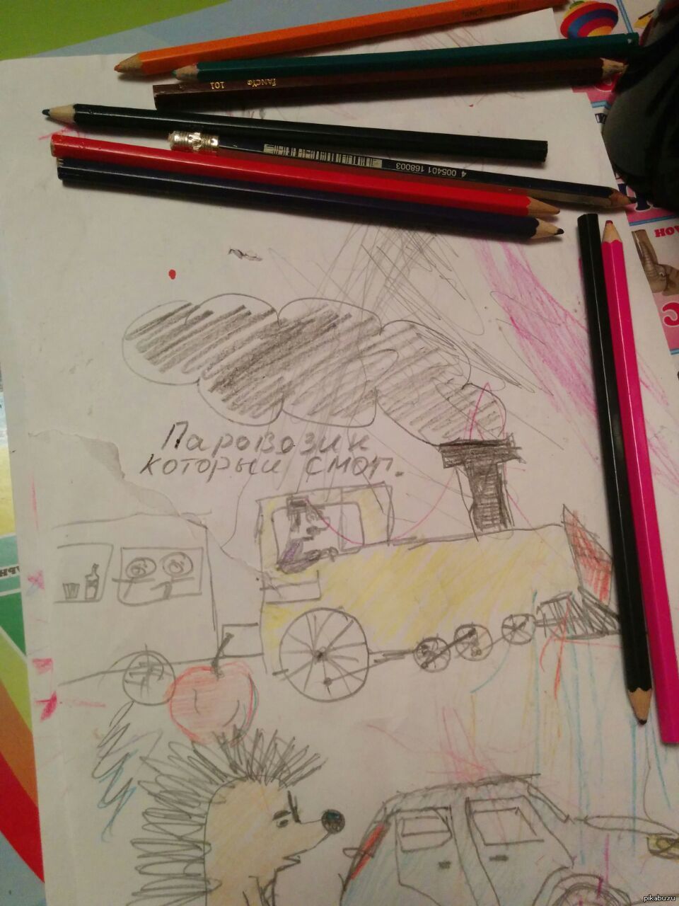 0 y2kbarker 10 лет назад Паровозик, который смог... Нарисовал ребенок у друга. Олдфаги поймут) Горячее Юмор Рисунок Рисунок карандашом Дети Детство
