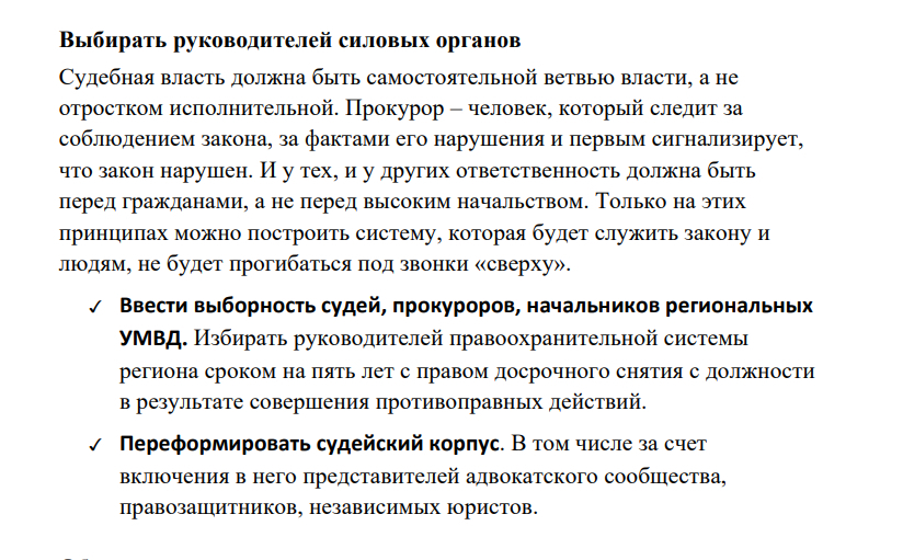 Да там и остальные пункты не то чтобы говно. Просто они больно уж популистические, и для парламентской партии, которая не рассчитывает на конституционное большинство, не совсем подходят. А с конституционным большинством, там хз как дело пойдет, у нас нет культуры исполнения предвыборных обещаний. А конституционное им необходимо для некоторых пунктов, т.к. например выборность судей прямо не предусмотрена в конституции.
