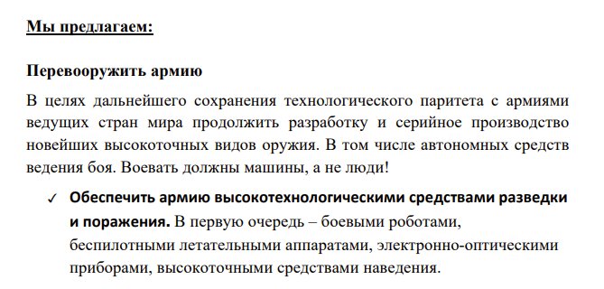 Зачем? Сейчас полным ходом идёт перевооружение армии, Новые люди тоже самое предлагали в 2021-м. Для этого ничего что ты описал выше делать не пришлось, т.к. всё выполняется на существующих мощностях, либо путем закупа вооружения у 3-х стран.