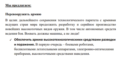 Я не во что не верю. Я тебе сказал, что всё уже происходит с текущими мощностями. Ну, написано было бы про решение демографической проблемы. Чем бы это помогло? Женщины рожать быстрее не начали бы, как и дети быстрее не выросли. А перевооружаться предлагали в 21-м, не в 40-м. То что ты пишешь это популизм еще дешевле, чем в предвыборной программе у НЛ.