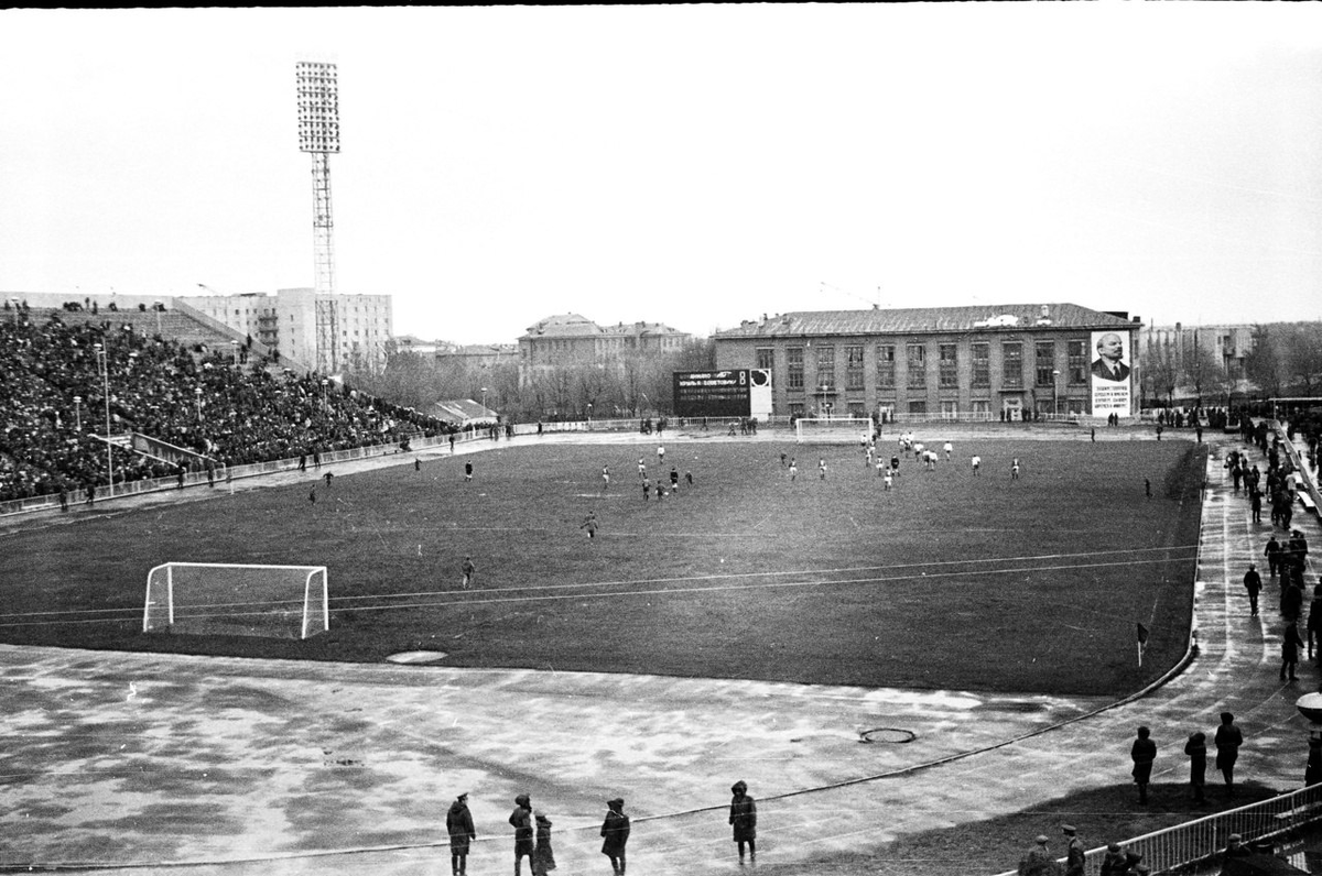Построен в 1957 году около завода. Первые трибуны — земляные. Люди сидели на холмах, как на фестивале: природа, воздух, мяч, минимум комфорта — максимум эмоций.