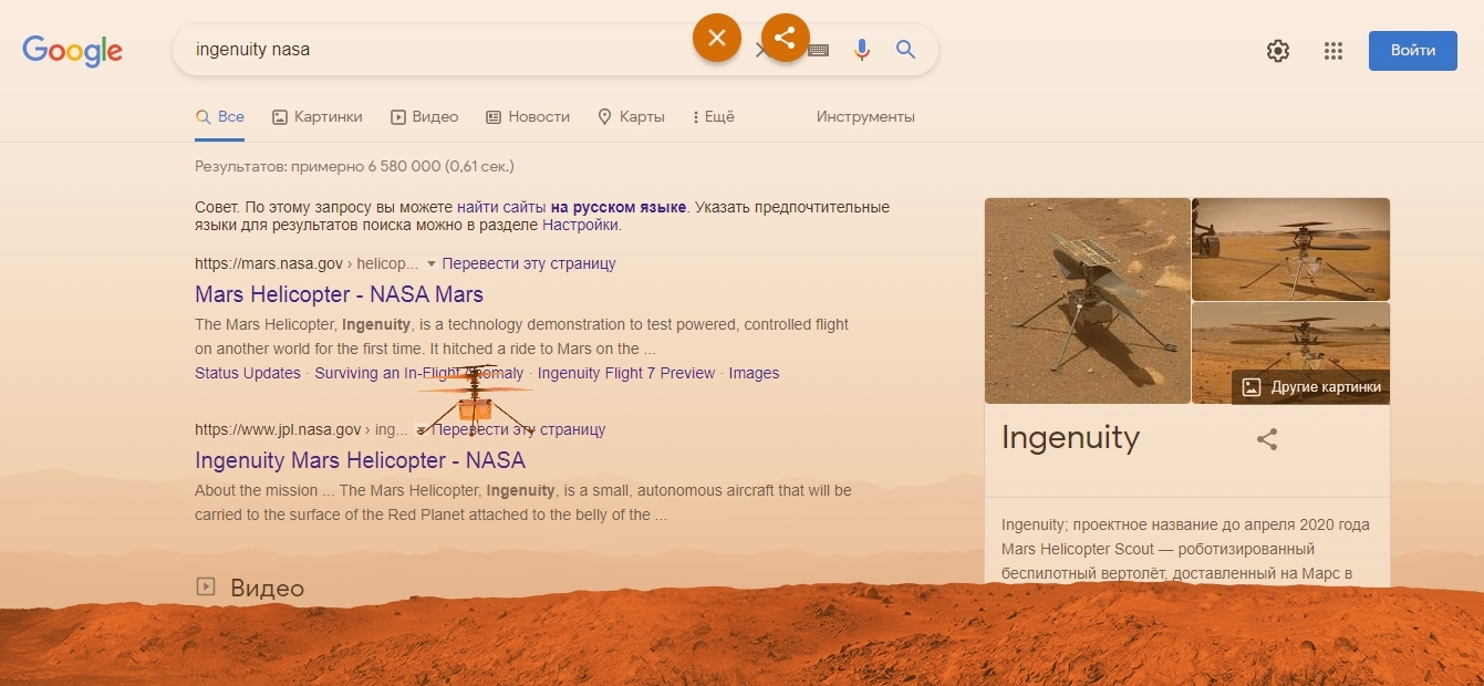 Введите запрос ingenuity nasa в поисковой системе Google.