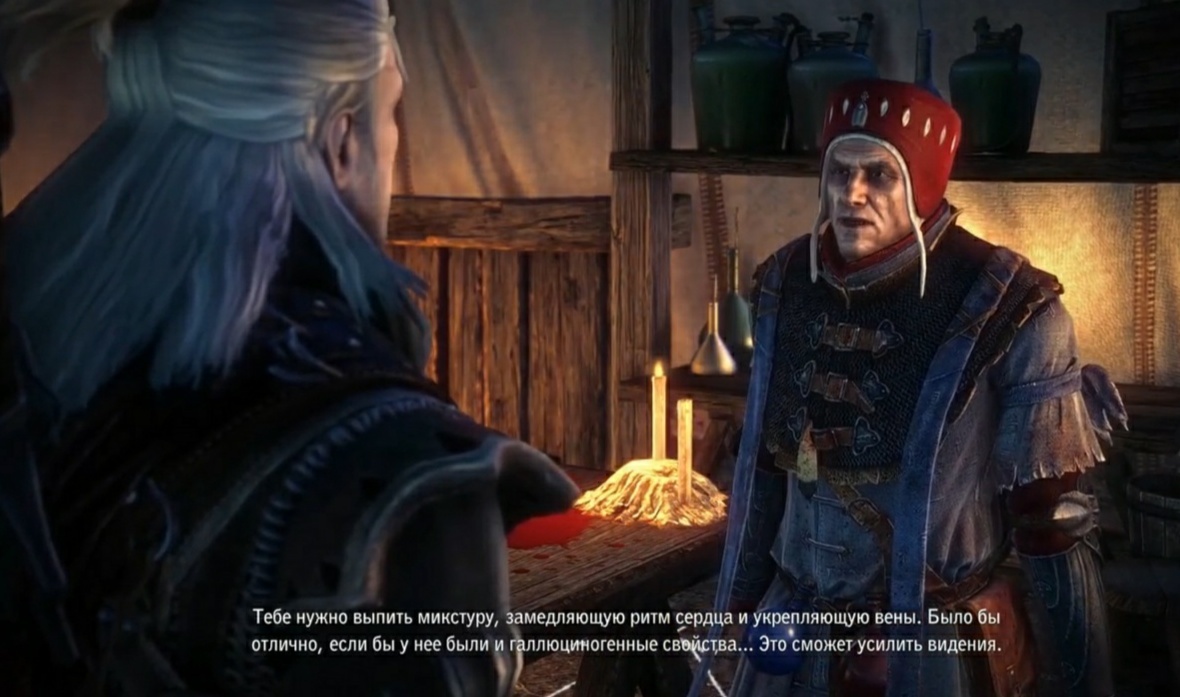 В игре "Ведьмак 3 Кровь и вино" Регис изготавливает зелье "отзвук" в котором Геральт также увидит видения.