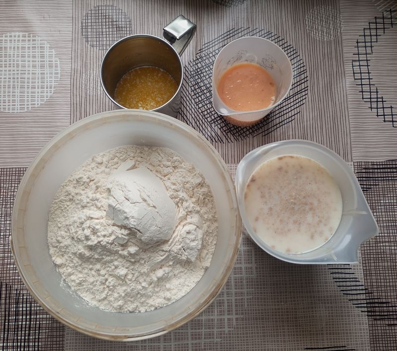 Мука- 550гр(+- сколько у вас уйдет),