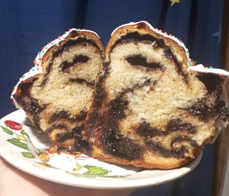Мы были в восторге! Куча шоколадной начинки по всему куличу. Тесто очень воздушное и сливочное. Мягкая глазурь не слишком сладкая. Все в балансе вкуса. У какой аромат стоит в доме. Просто божественно !)