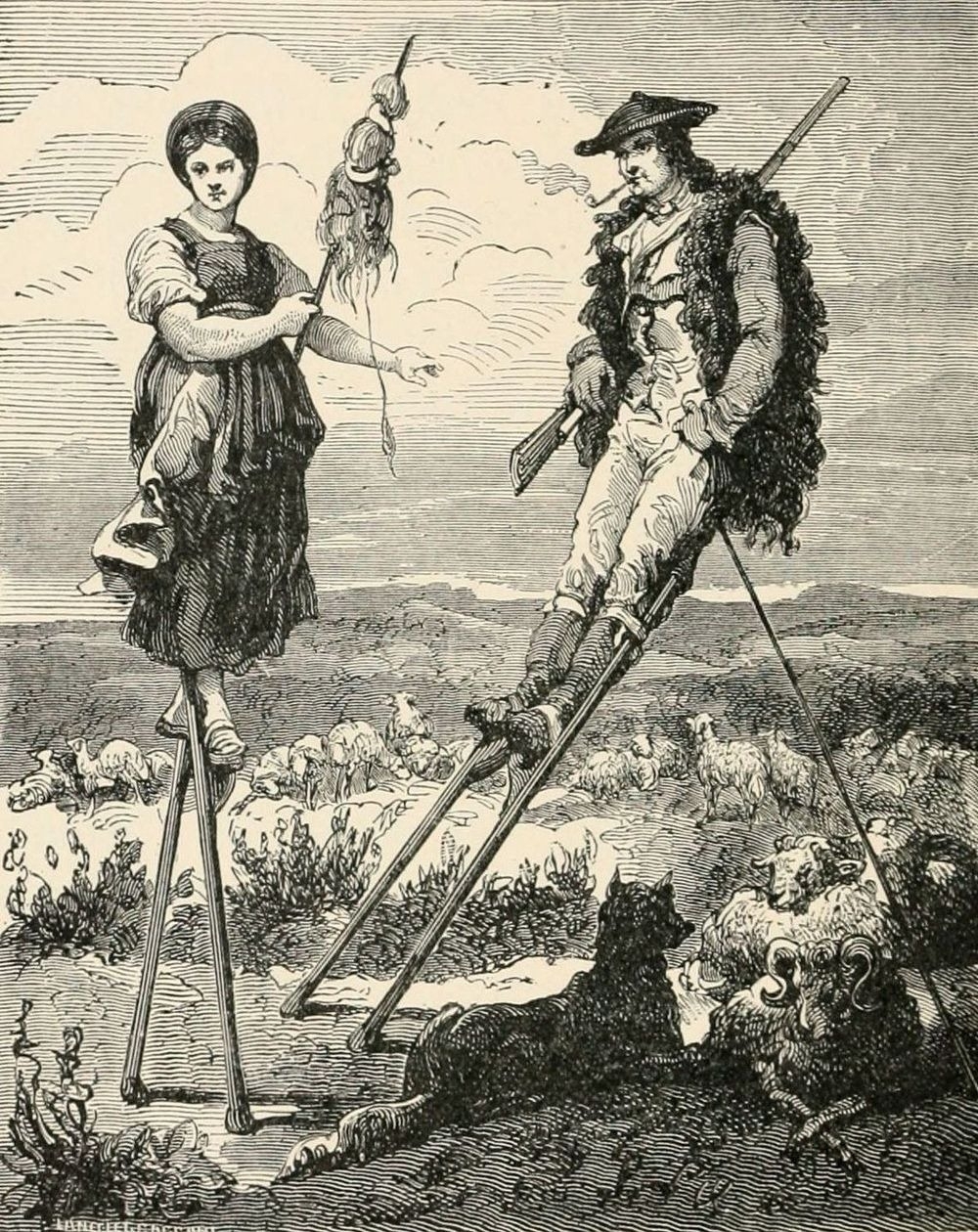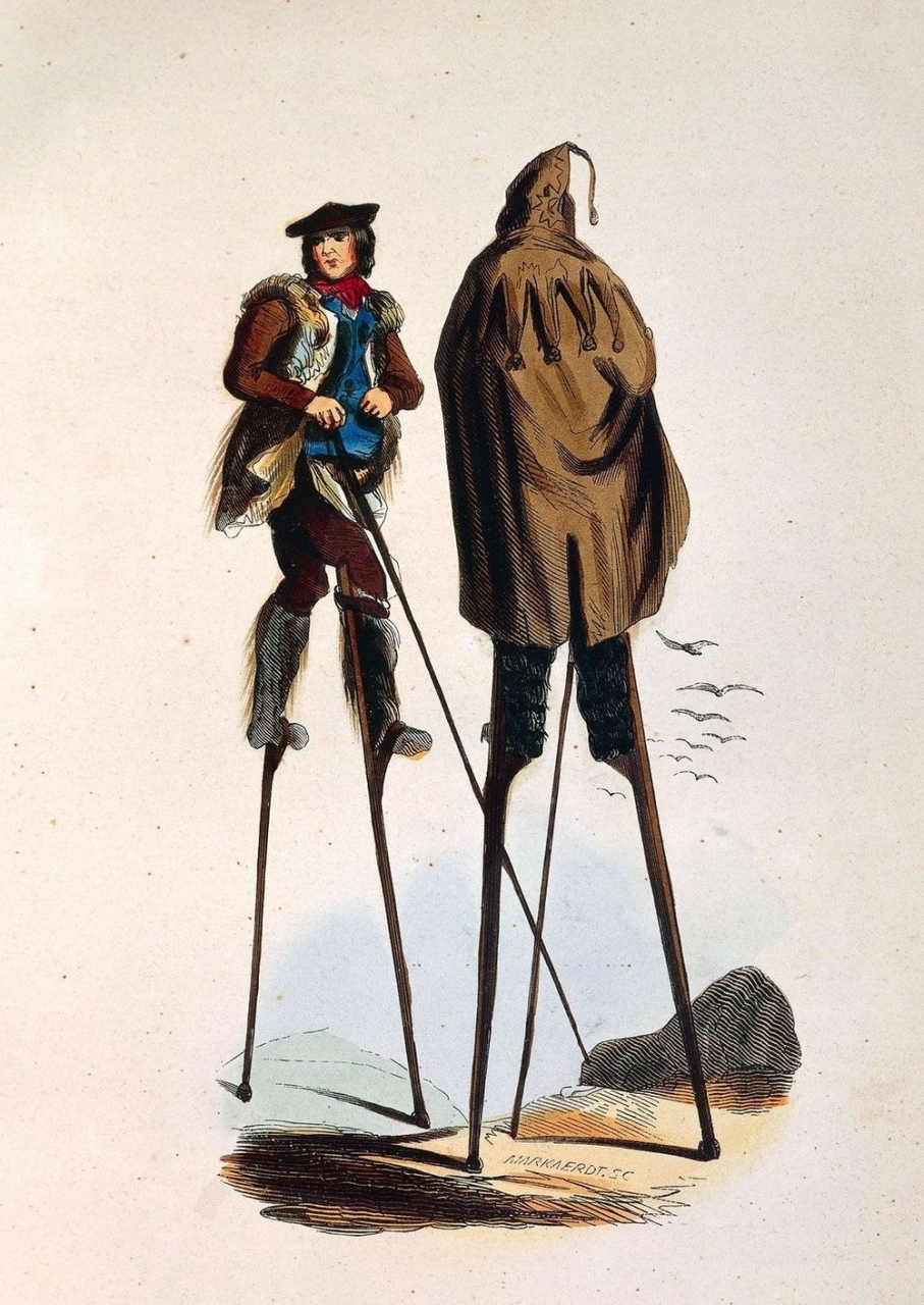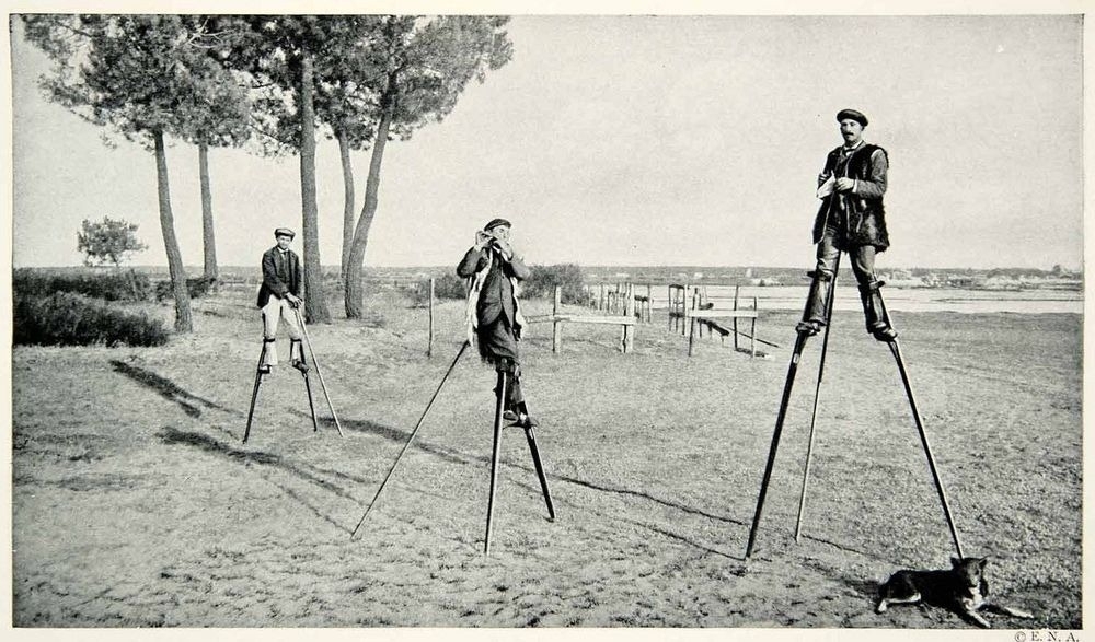 Фактически, все население Ланды ходило на ходулях, чтобы избежать последствий дождя. Эта система локомоции была настолько эффективной, что люди на ходулях не отставали от лошадей на полной рыси.