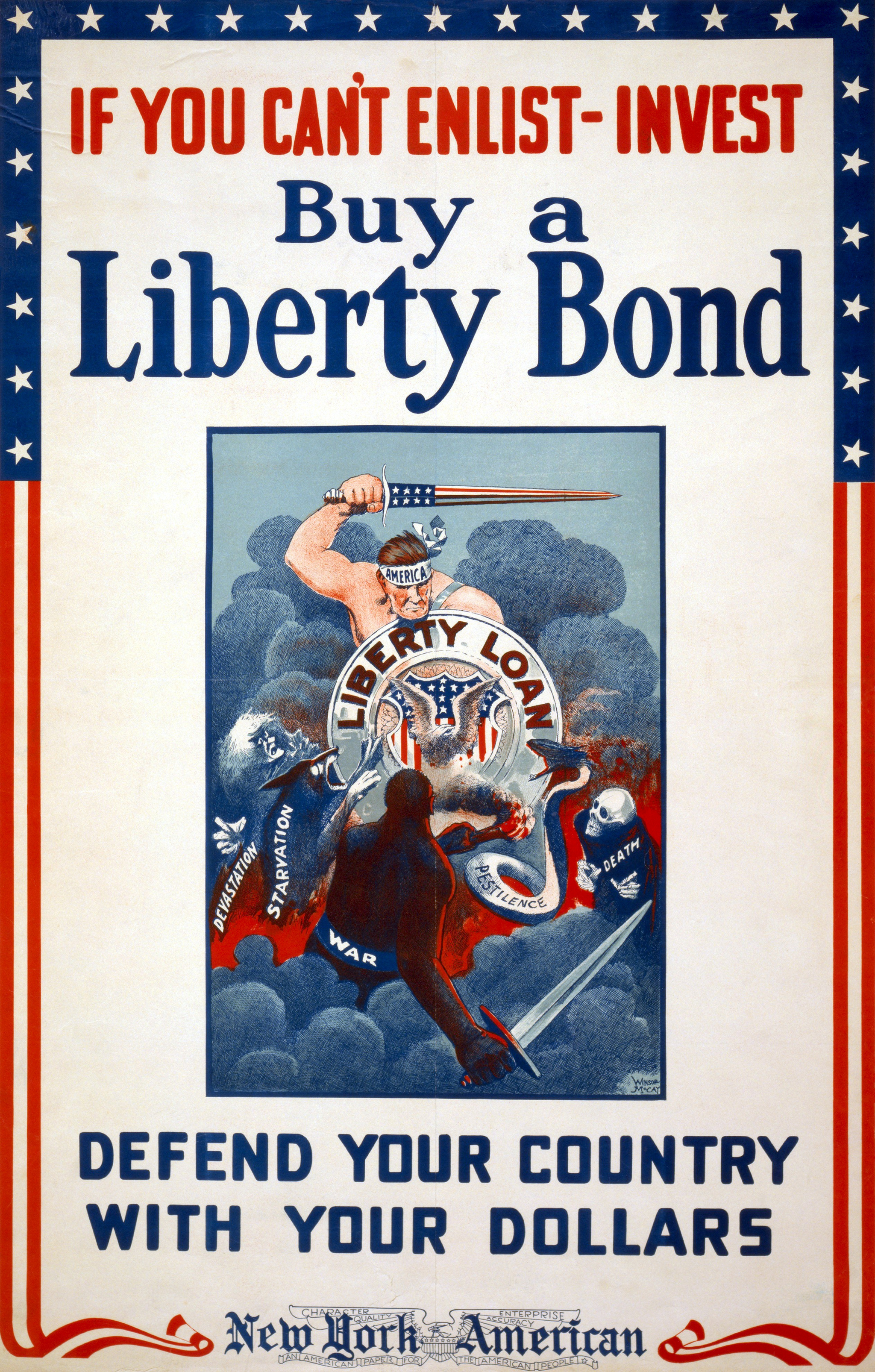 > Срочно нужен способ закрыть финансовую дыру, и правительство выпускает значительный объём гособлигаций «LIBERTY BONDS» (займ свободы)