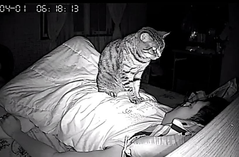 О, когда сны с реальностью смешиваются это забавно) У меня с котом так было. Снится мне не помню уж что, помню только, что во сне на меня что-то прыгнуло из темноты.. Я во сне испугался, проснулся резко, глаза открываю - а прям перед лицом котья мордра.