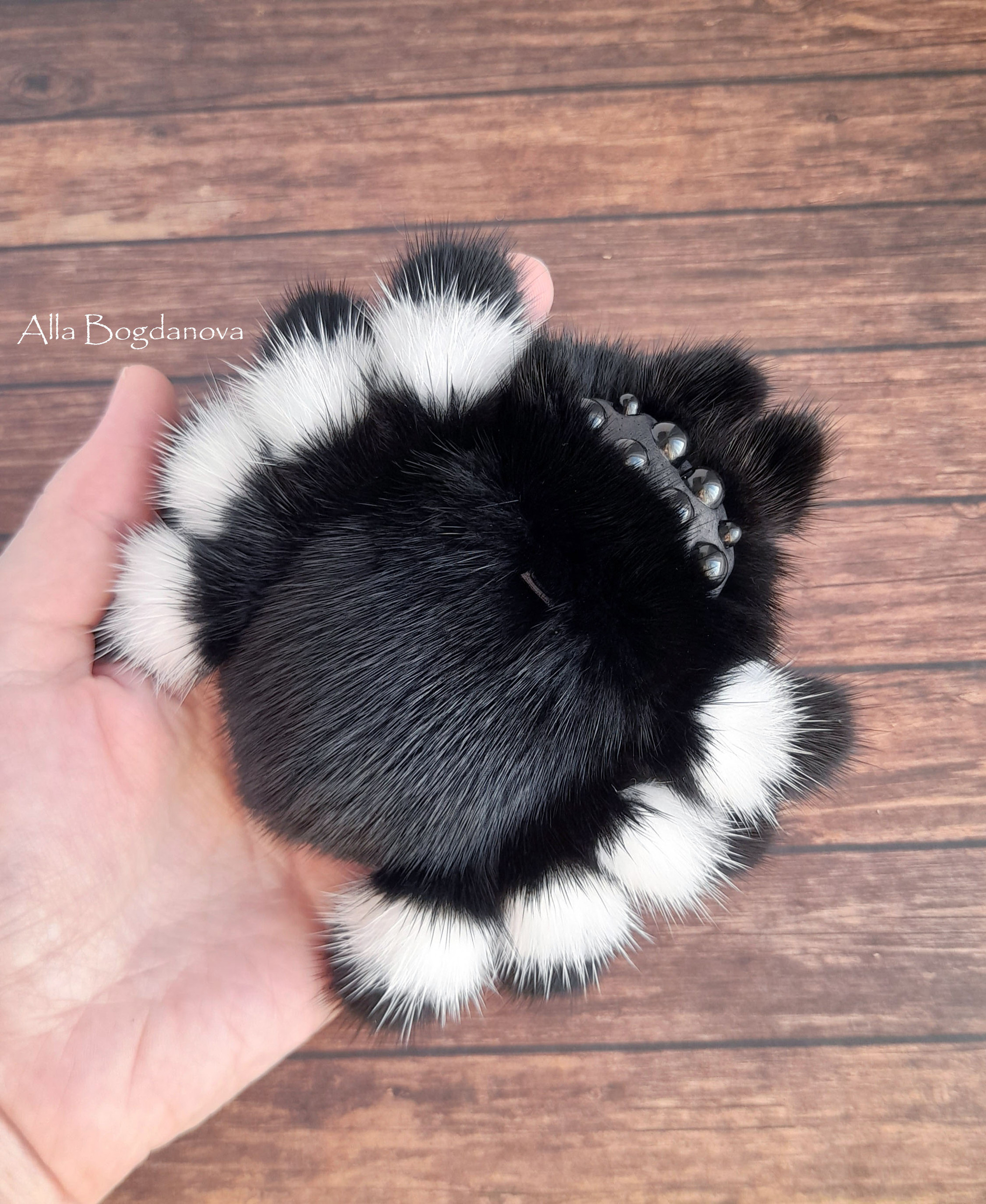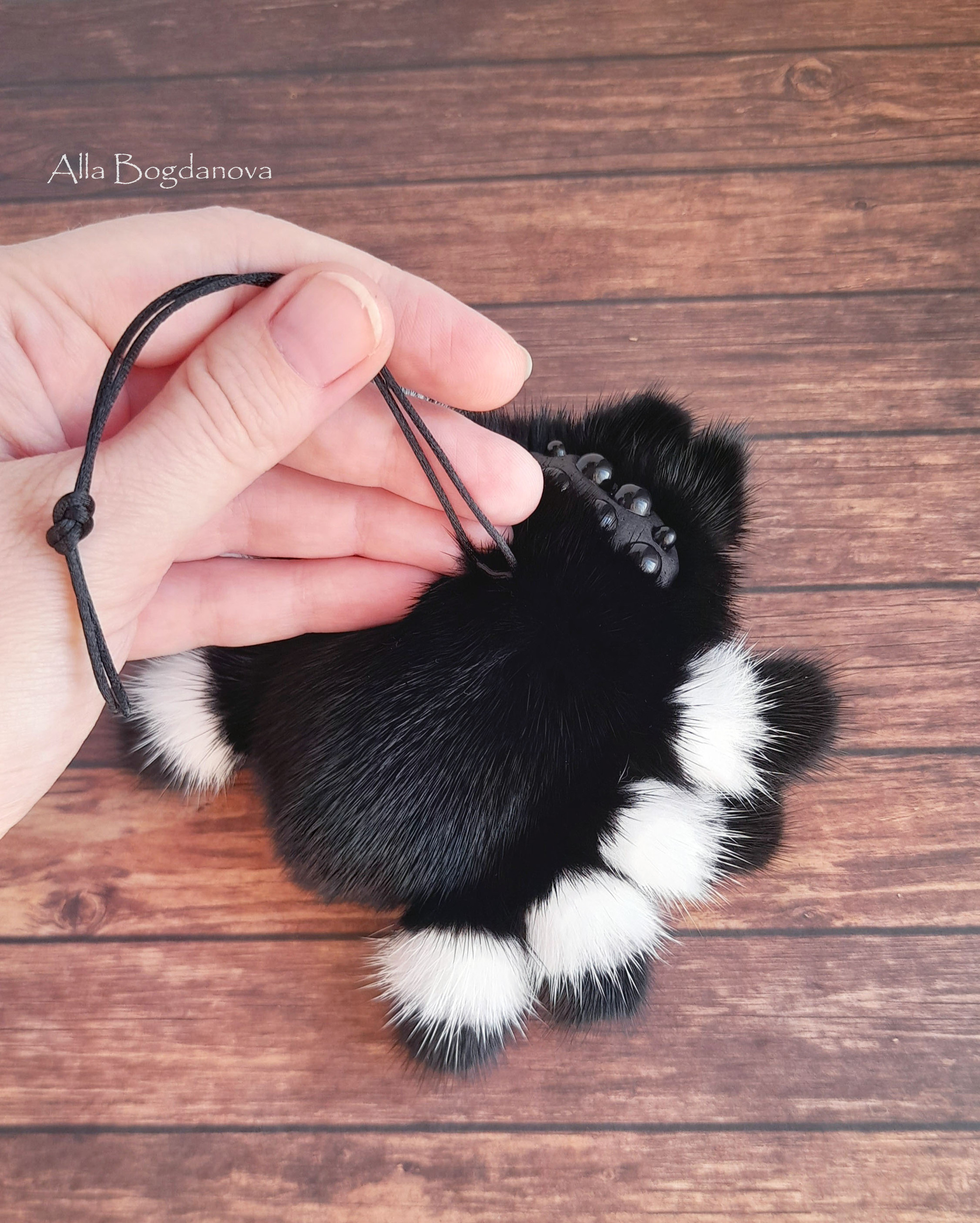 Был у меня такой немного нетипичный для меня заказ, нужно было паучка сшить. Я не то, что побаиваюсь, но просто не люблю их. А тем более нужно мягонького, пушистого, так что сделала) Он одновременно и брошь и подвеска в авто, петелька есть, если что. Лапки с коготками, делала из плотной кожи, внутри лапок проволочный каркас. Мех норки, натуральная кожа, пластиковые глазки, булавка для броши, набивка холлофайбер. Я хотела четыре глазика сделать, но просили аж восемь штук, немного жутковато как по мне, но мило)