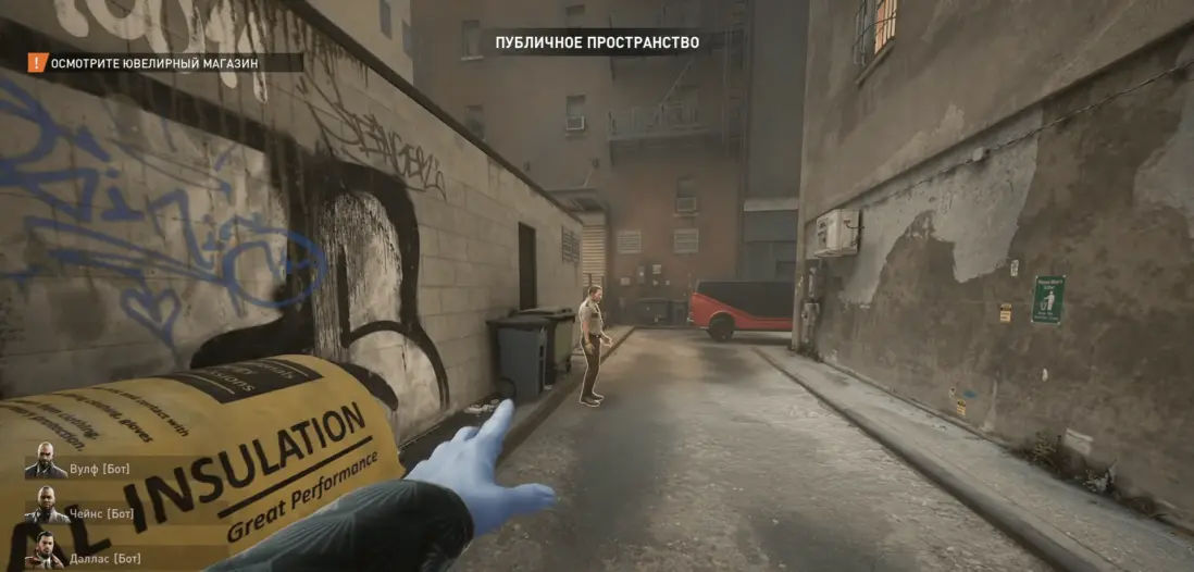 С болванчиками все обстоит не лучше. Если игроки не смогут присоединиться к твоему ограблению, то тебе выдадут ботов. Не стоит надеяться на то, что они будут как-то участвовать в процессе, вся подготовка будет на тебе. В активной же фазе, они будут принимать пассивное участие, отстреливаясь от полицейских. Хотя бы могут помочь таскать сумки с награбленным, кидаешь ему мешок и бот будет следовать за тобой или твоим напарником. Причем боты не палятся другими NPC на карте. Бензина подливают и противники, которые вежливо дожидаются твоей перезарядки, а некоторые и вовсе не замечают тебя в упор.