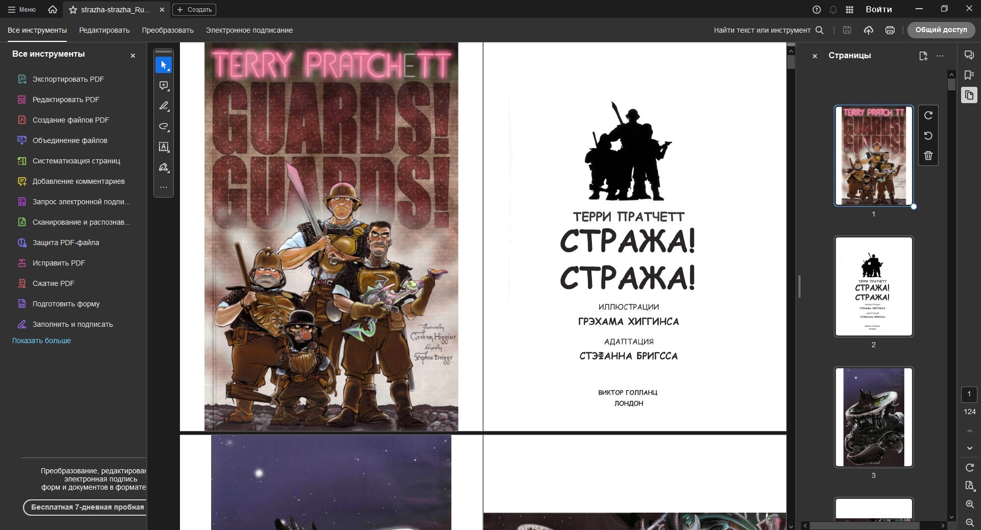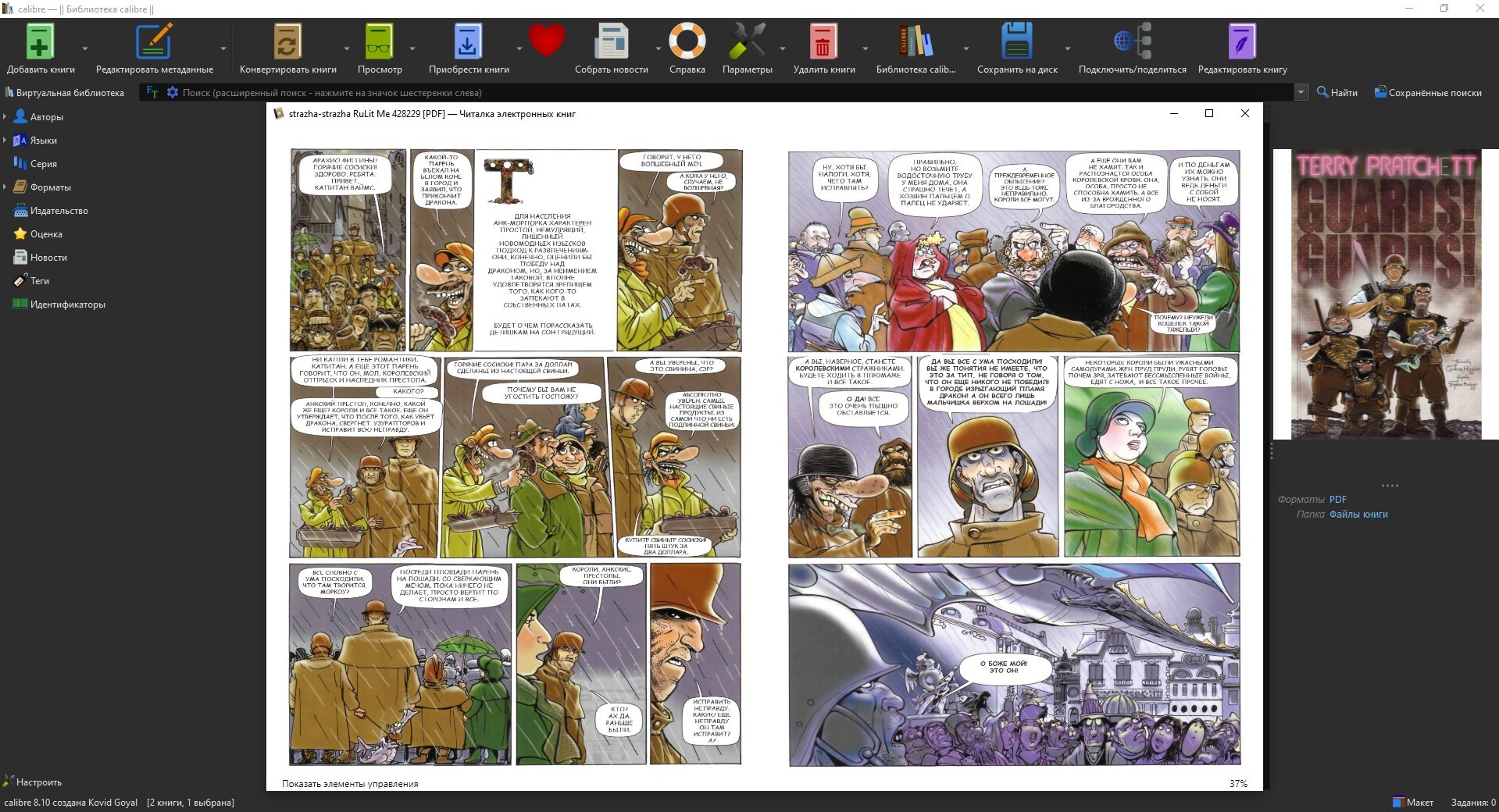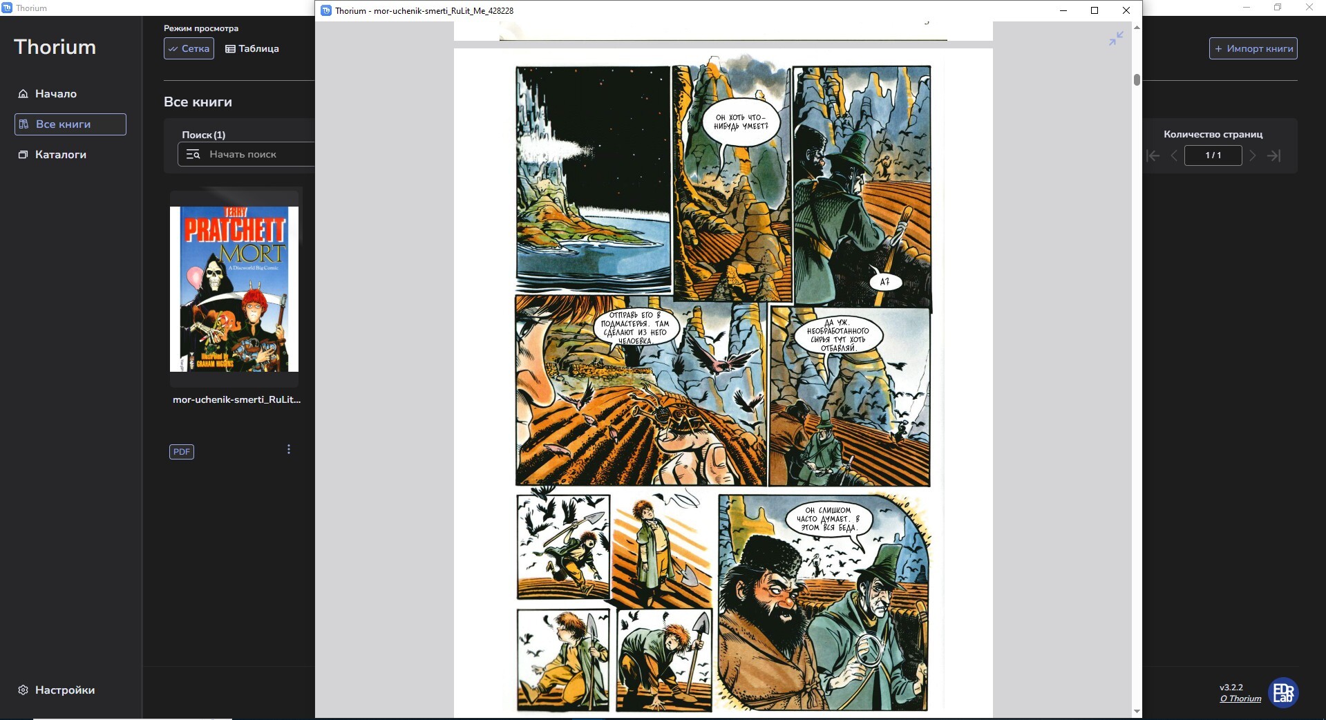 Но тут возникла проблема: книги были отсканированы в PDF-формате, и встал вопрос, как их открыть. На телефоне у меня стоит ReadEra, которая поддерживает ПДФ-формат. Но перекидывать файлы с диска на смартфон было лень. К тому же комиксы лучше читать на большом экране.