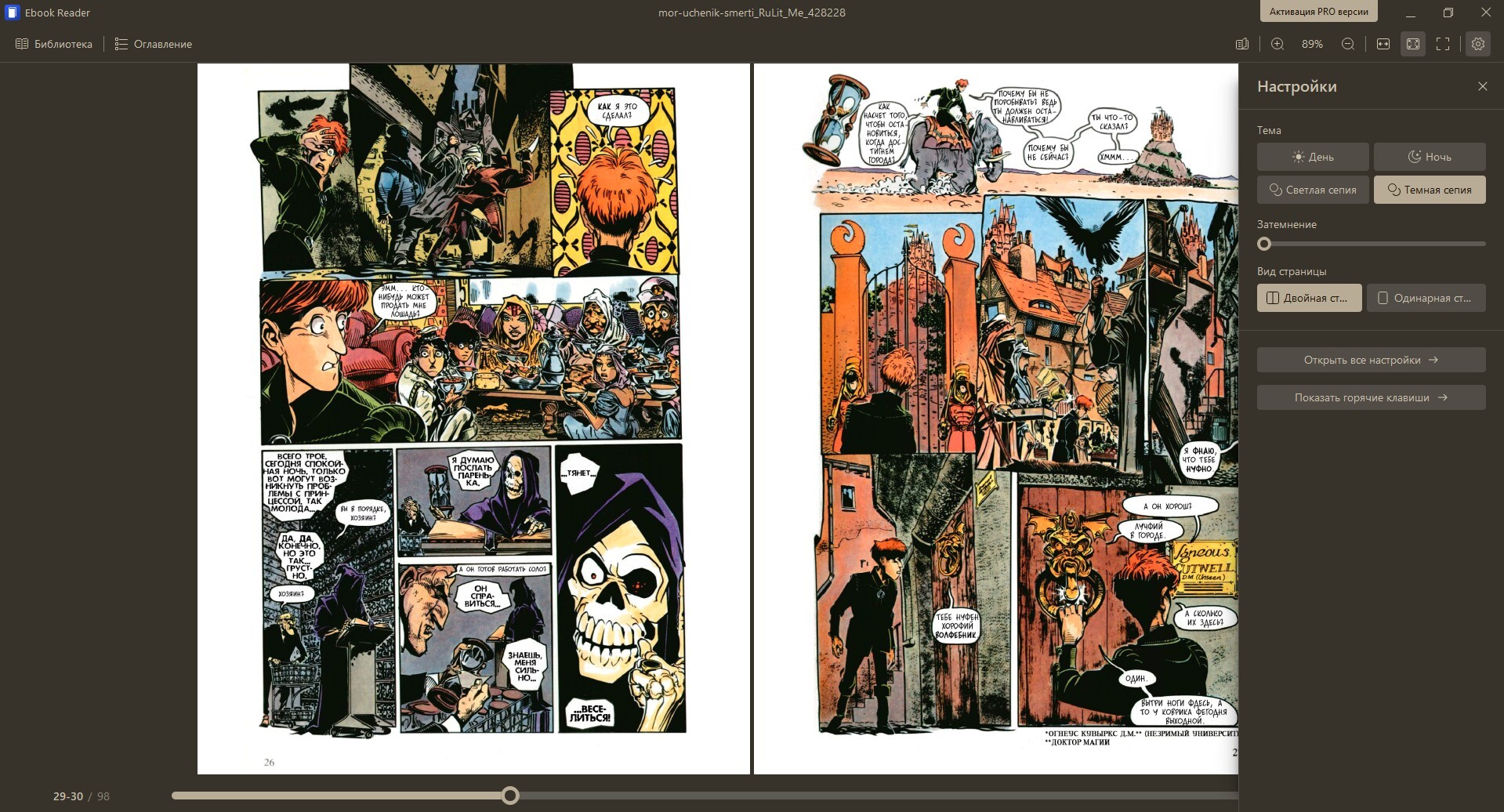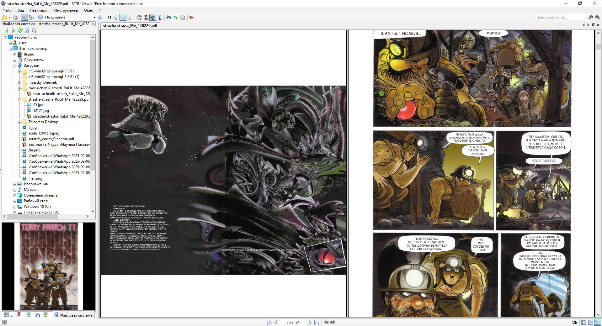 На прошлых выходных я наконец решился почистить свой старый ноутбук — разобрать файлы, удалить ненужное, чтобы освободить место. Ну и наткнулся на папку с архивами комиксов Терри Пратчетта. Каюсь, про чистку ноутбука сразу забыл — захотелось срочно все перечитать.