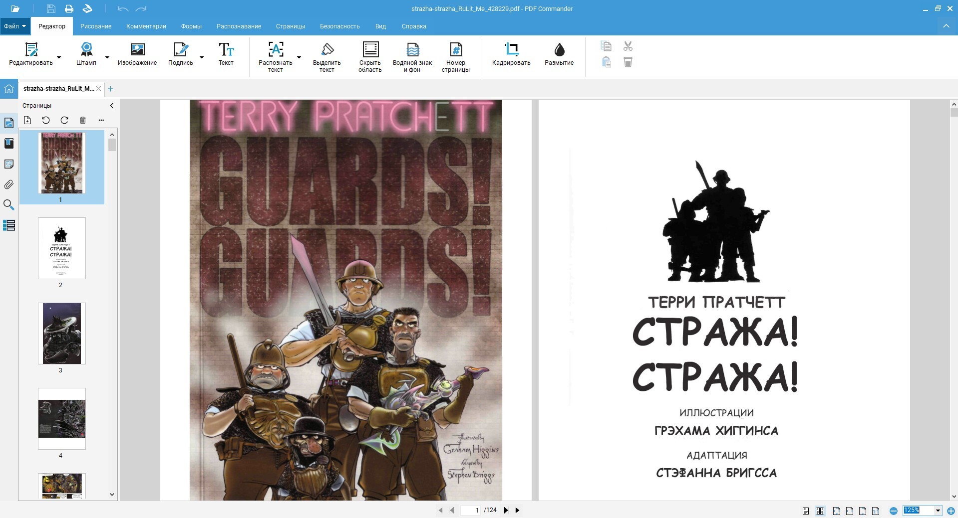 Тем, кому важны экономия места и многофункциональность, советую установить PDF Commander. Получите сразу читалку и редактор в одном лице. Сможете собрать несколько книг серии в один файл, удалив лишнее (например, я выкинул финальные листы с выходными сведениями), улучшить некачественные сканы, вытащить текст с картинок и многое другое.