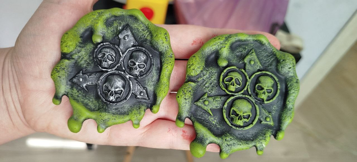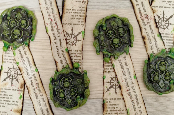 Давно я вынашивала идеи сделать подобие печатей чистоты с символами хаоситов. Просто потому что тут можно немного разгуляться и поэксперементировать с внешним видом. У меня уже есть в "портфолио" несколько печатей чистоты лоялистов, а до хаоситов не доходили руки.