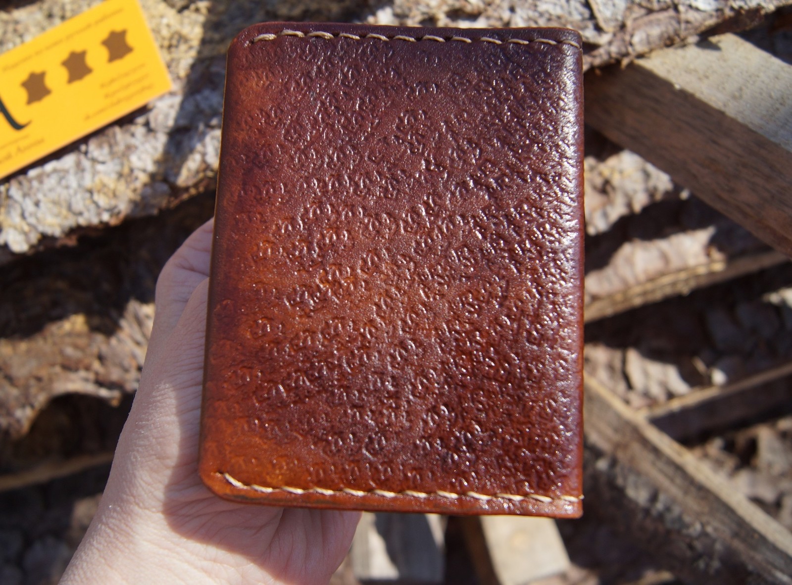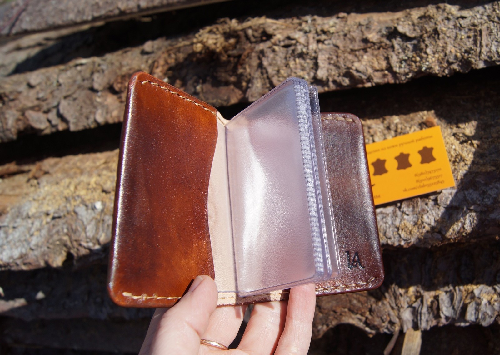 Визитницу сделала из кожи растительного дубления. Оттиснила рисунок, долго, немного запуталась, но вроде исправила и получилось правильно. Затем покрасила профессиональными красками для кожи fiebing's. Покрыла затем Итальянским финишем для закрепления и пошла фотосессию делать)